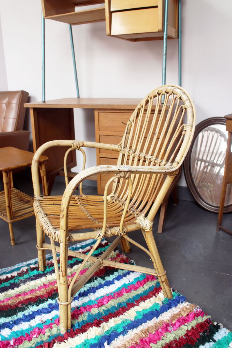 Fauteuil osier années 70