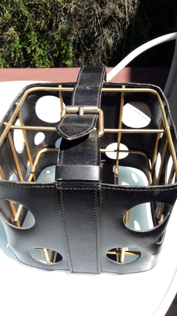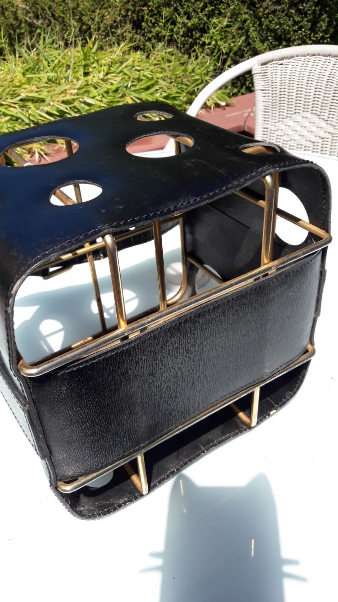 Porte bouteilles (4 bouteilles) des années 50 dans le style Jacques ADNET en cuir et métal