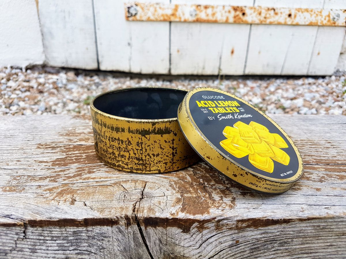Petite boîte à bonbons "acid melon tablets" de Smith Kendon.