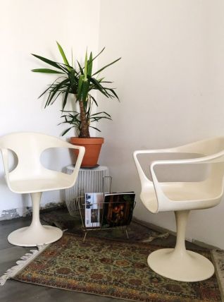 Jolie paire de fauteuils Tulipe pivotants des années 60, en fibre, esprit Eero Saarinen, de l'usine Hierros Artisticos VIDAL (aujourd'hui Vidal Grau Muebles) à Valence.