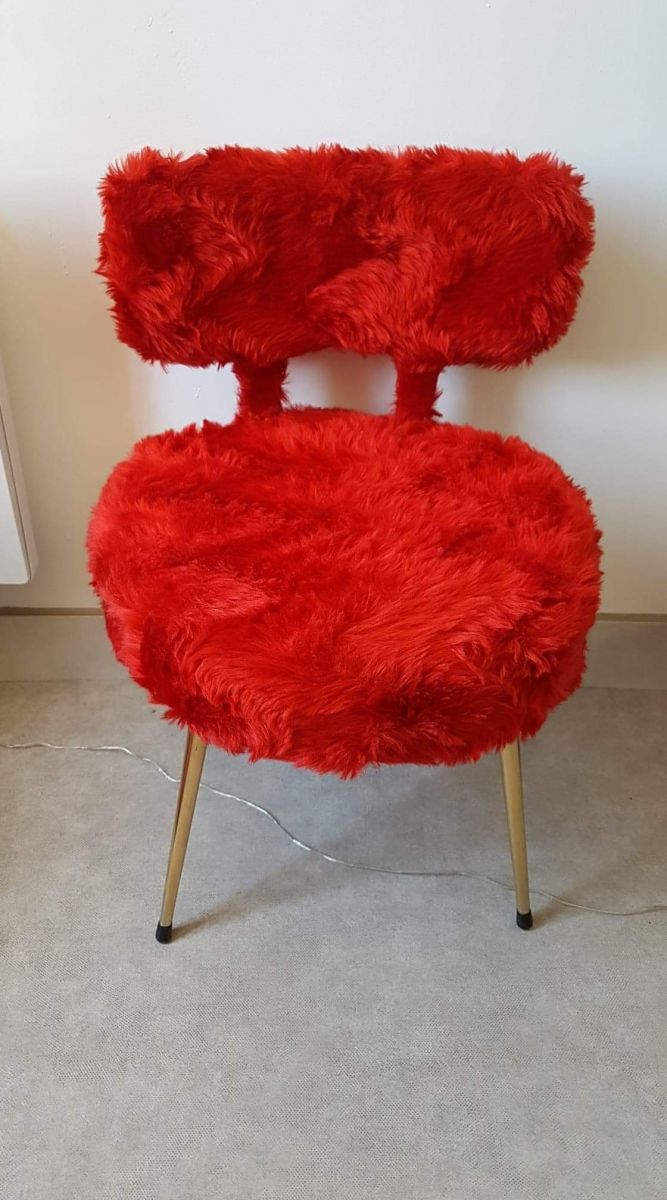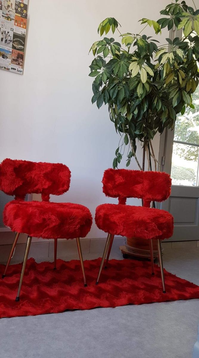 chaises moumoute rouge vintage Pelfran année 72 en très bon état