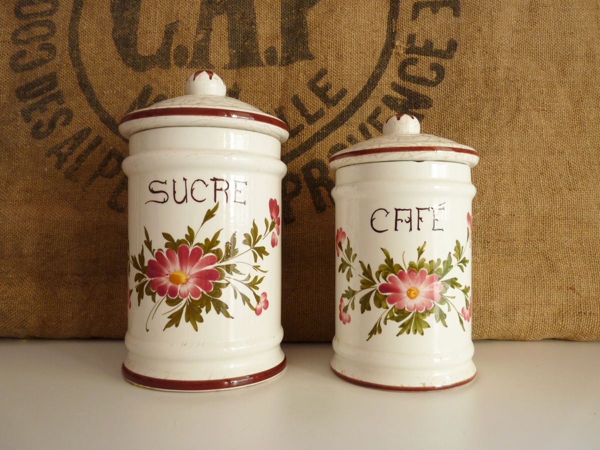 2 pots en céramique, Sucre et Café, estampillés Susy