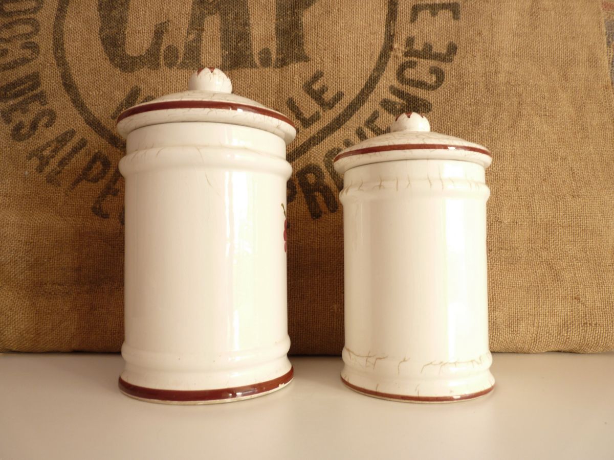 Très belle série de 2 pots à épices en céramique Susy Made Italy. Une très belle décoration vintage pour votre cuisine.