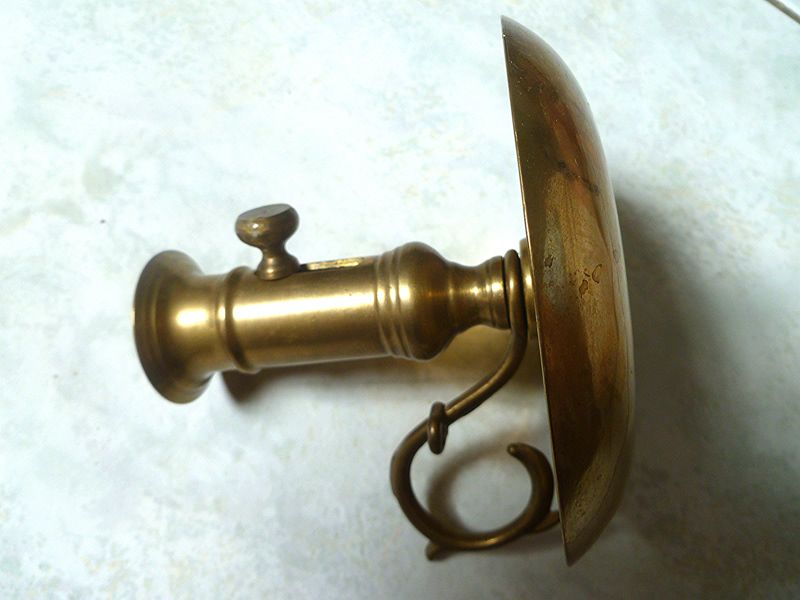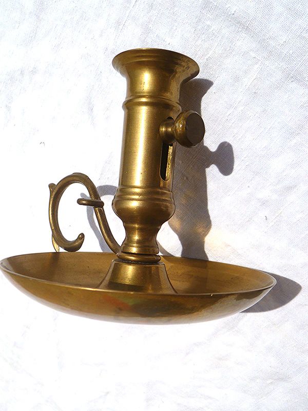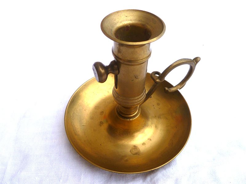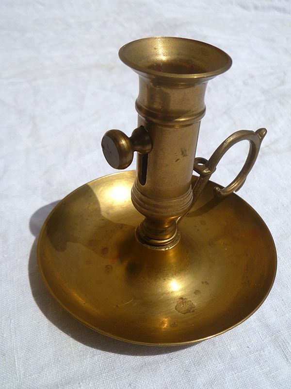 ancien bougeoir en laiton avec poussoir a blocage