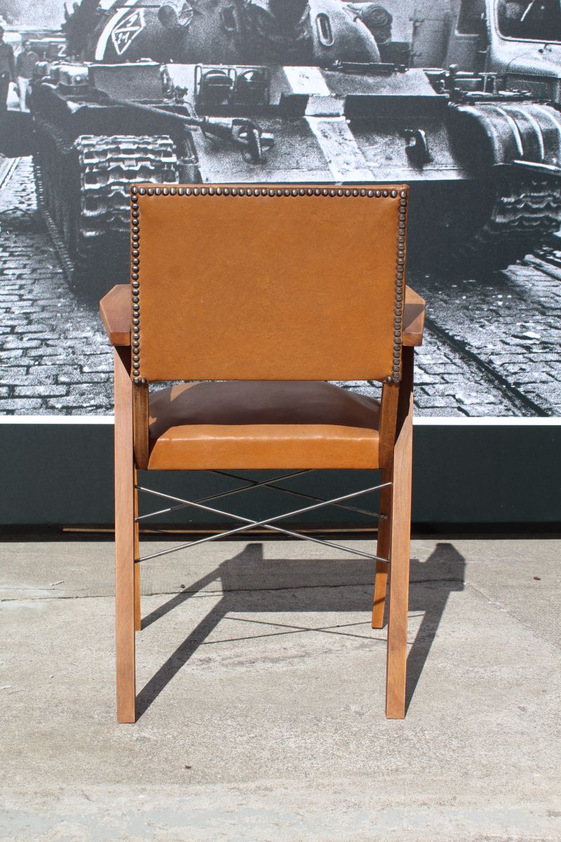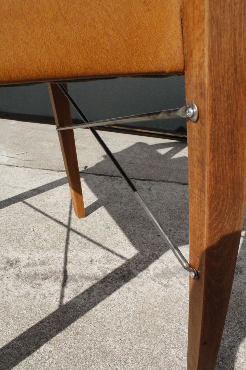 Le revêtement de son dossier/assise est en skaï marron, très facile d'entretien, le dossier est clouté pour un style à la limite de l'industriel.