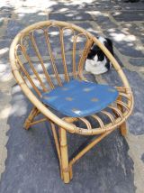 Matériaux : osier + galette de chaise en tissus imprimé scarabées (tissus non déhoussable)