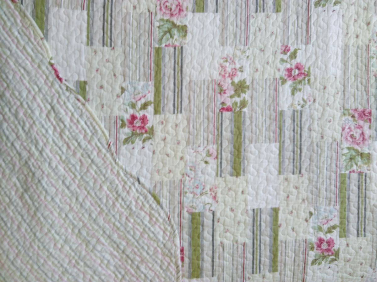 Modèle avec motifs floraux d’un côté et rayé de l’autre + 2 taies identiques pour lit 2 personnes :