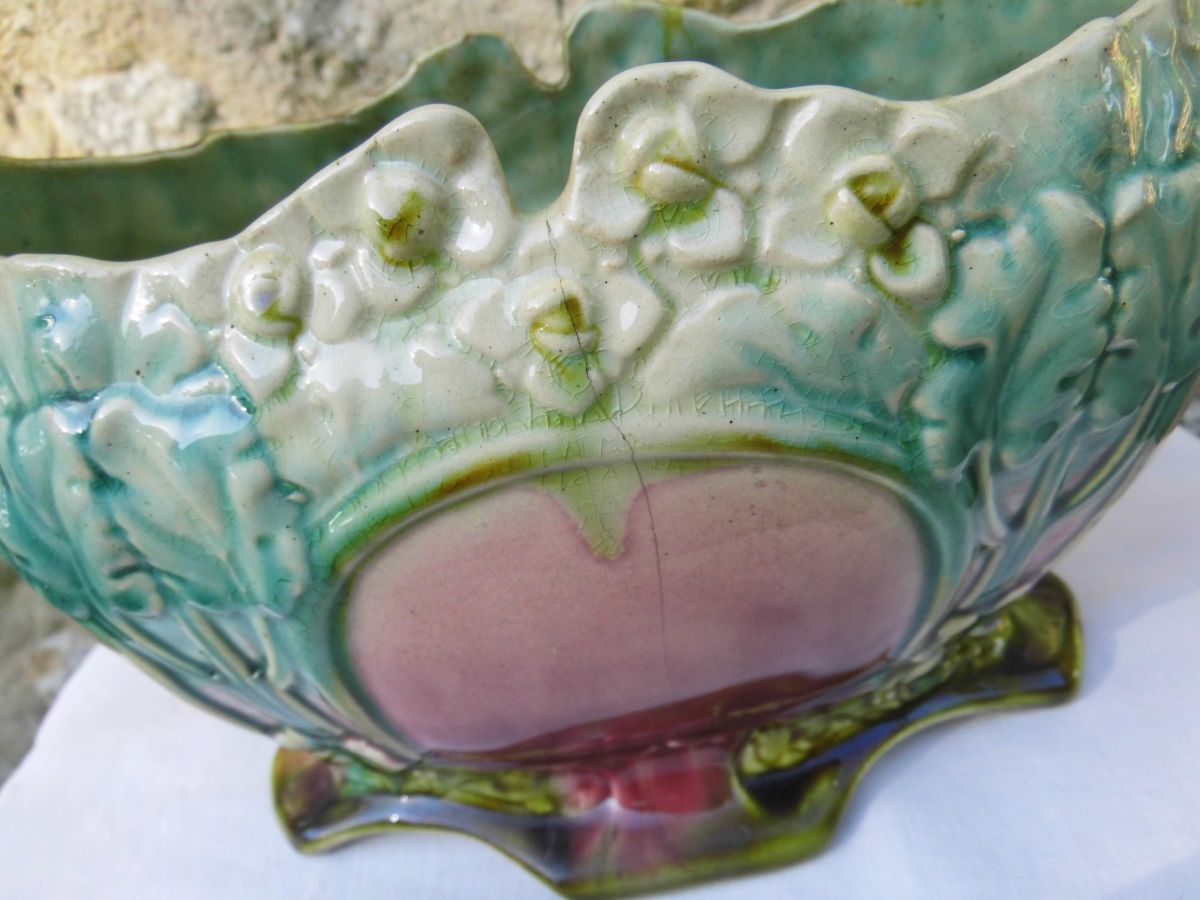 Jardinière en barbotine années 1900 -ART NOUVEAU sans doute des faïenceries du Nord dans le genre des barbotines d'Orchies.
