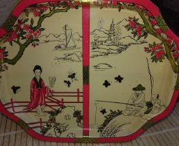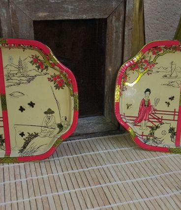 Plateaux emaillės inspiration chinoise. ..geisha. .ils mesurent environ 15 cm de large.très jolie sur un mur pour une ambiance Zen