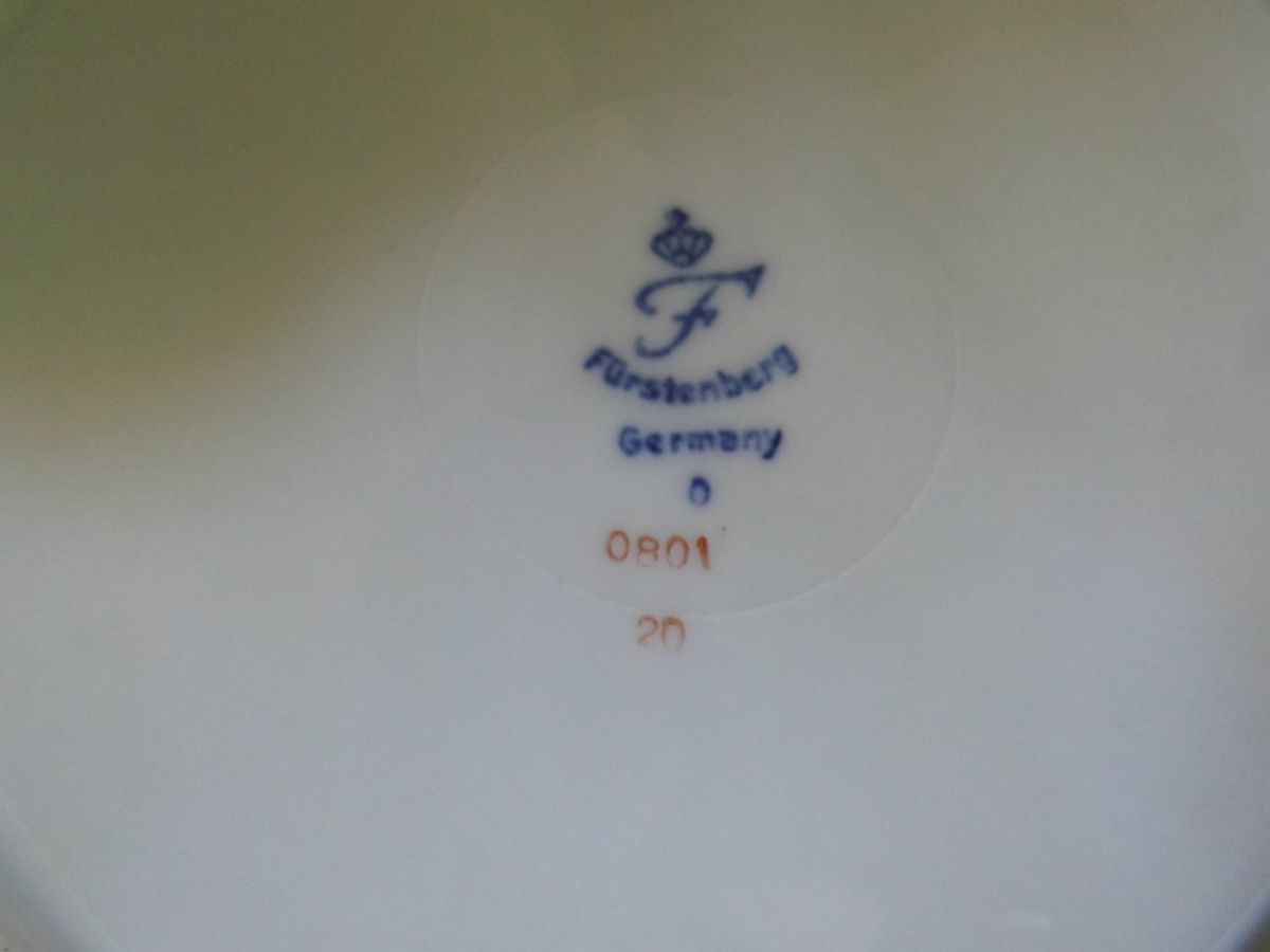 Paire de tasses à piédouches et petites assiettes plates (format assiettes à dessert) comme un service à petit déjeuner, en porcelaine allemande de Furstenberg