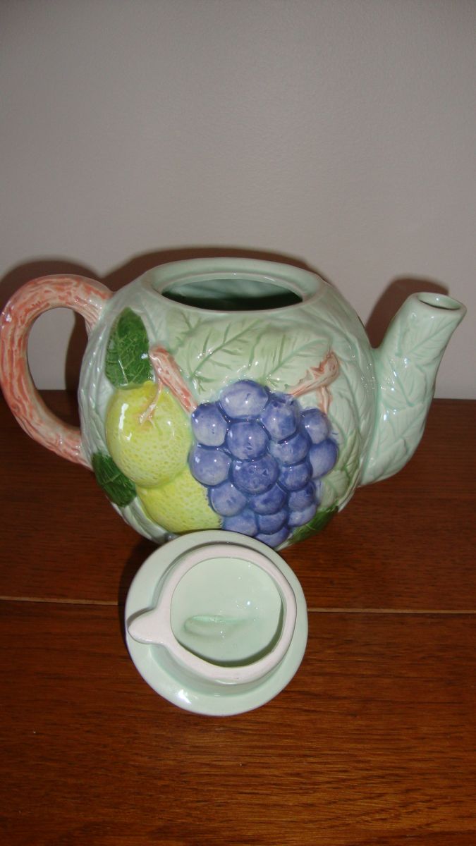 THEIERE EN BARBOTINE DECOR FRUITS