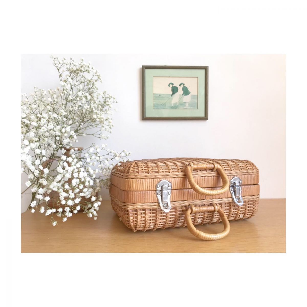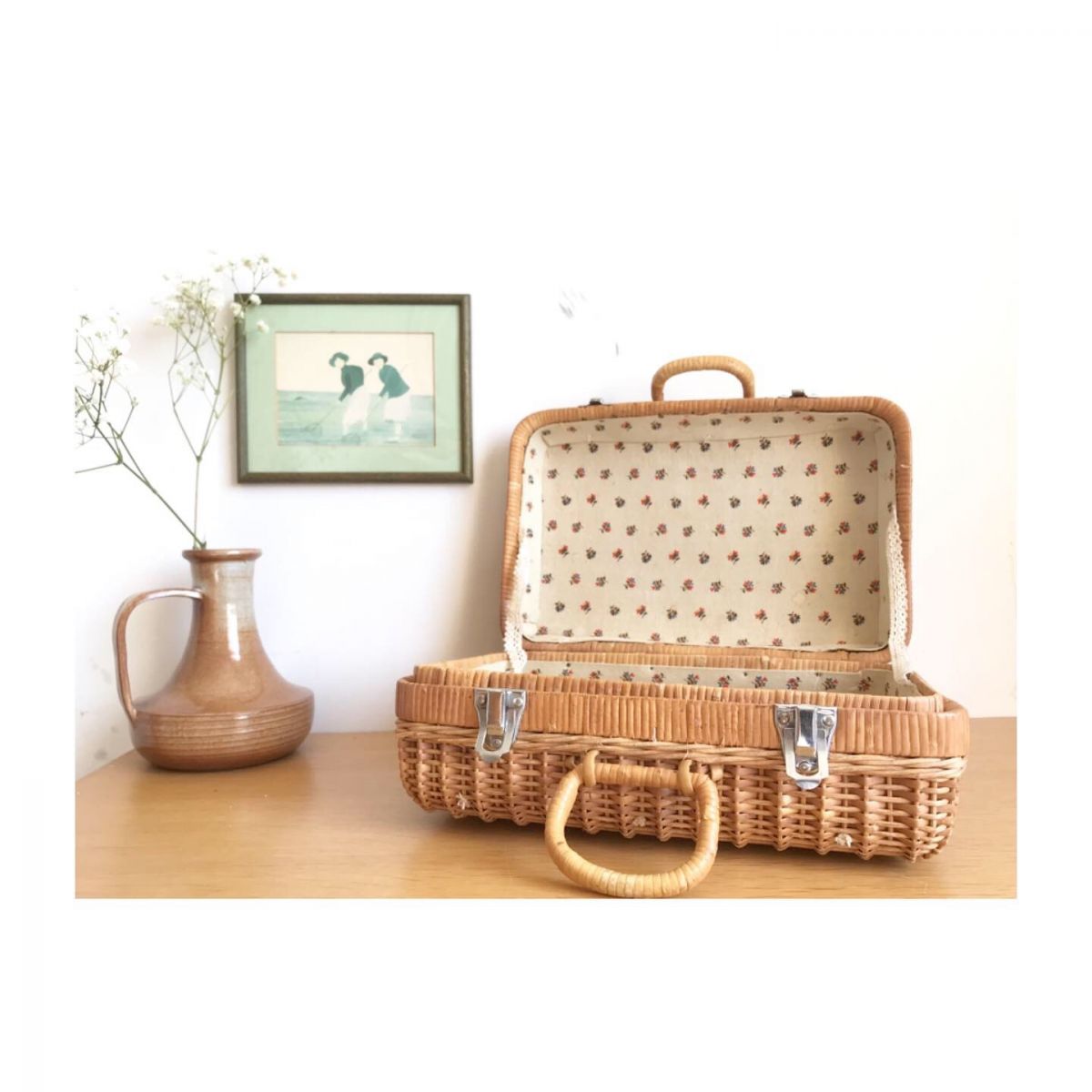 Valisette en osier et tissu