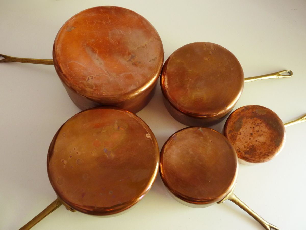 Lot de 5 casseroles française en cuivre étamé