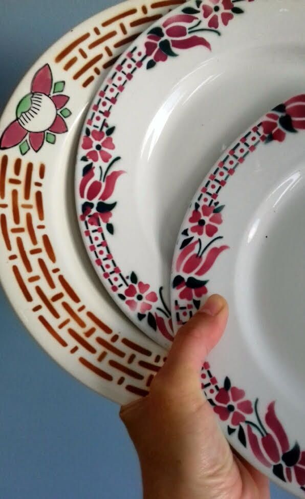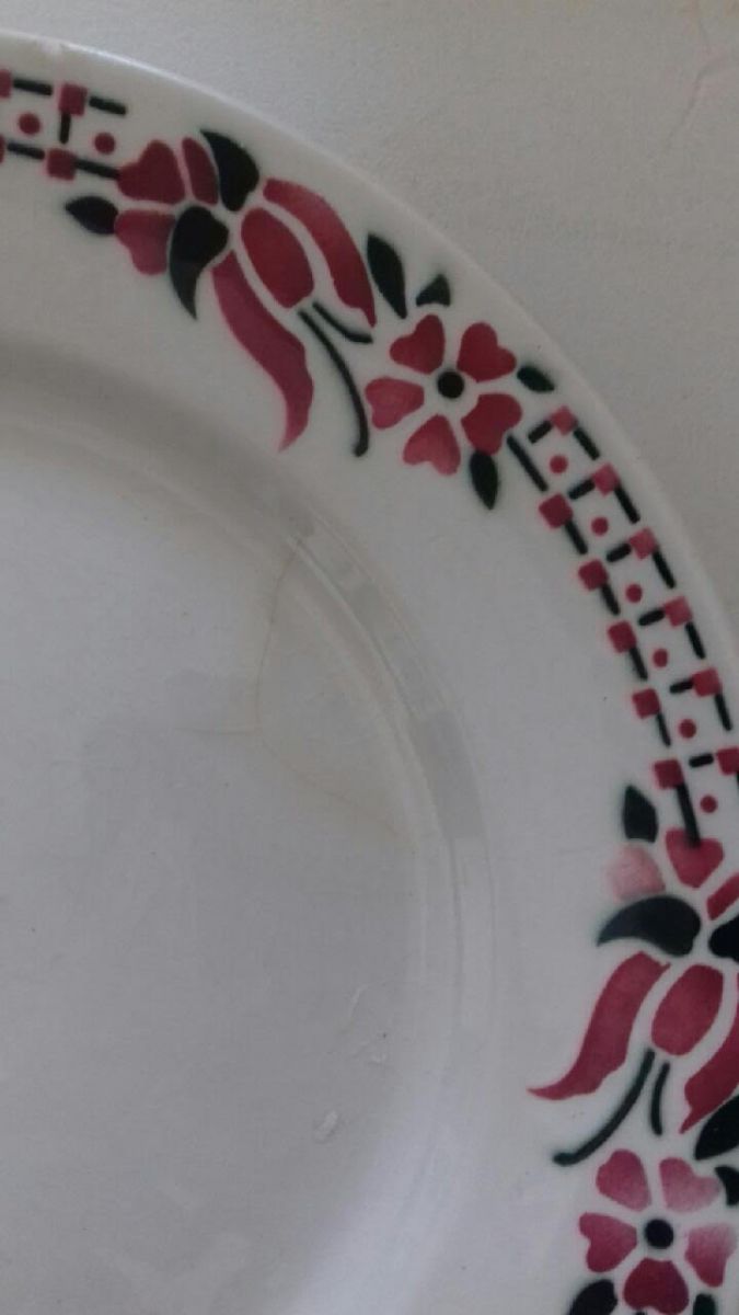 Lot de 3 assiettes semi-creuses en très bon état (l'une des 3 - St Amand motifs roses) a une petite ébrèchure sur le côté de la taille d'un cheveu (photo n°4)