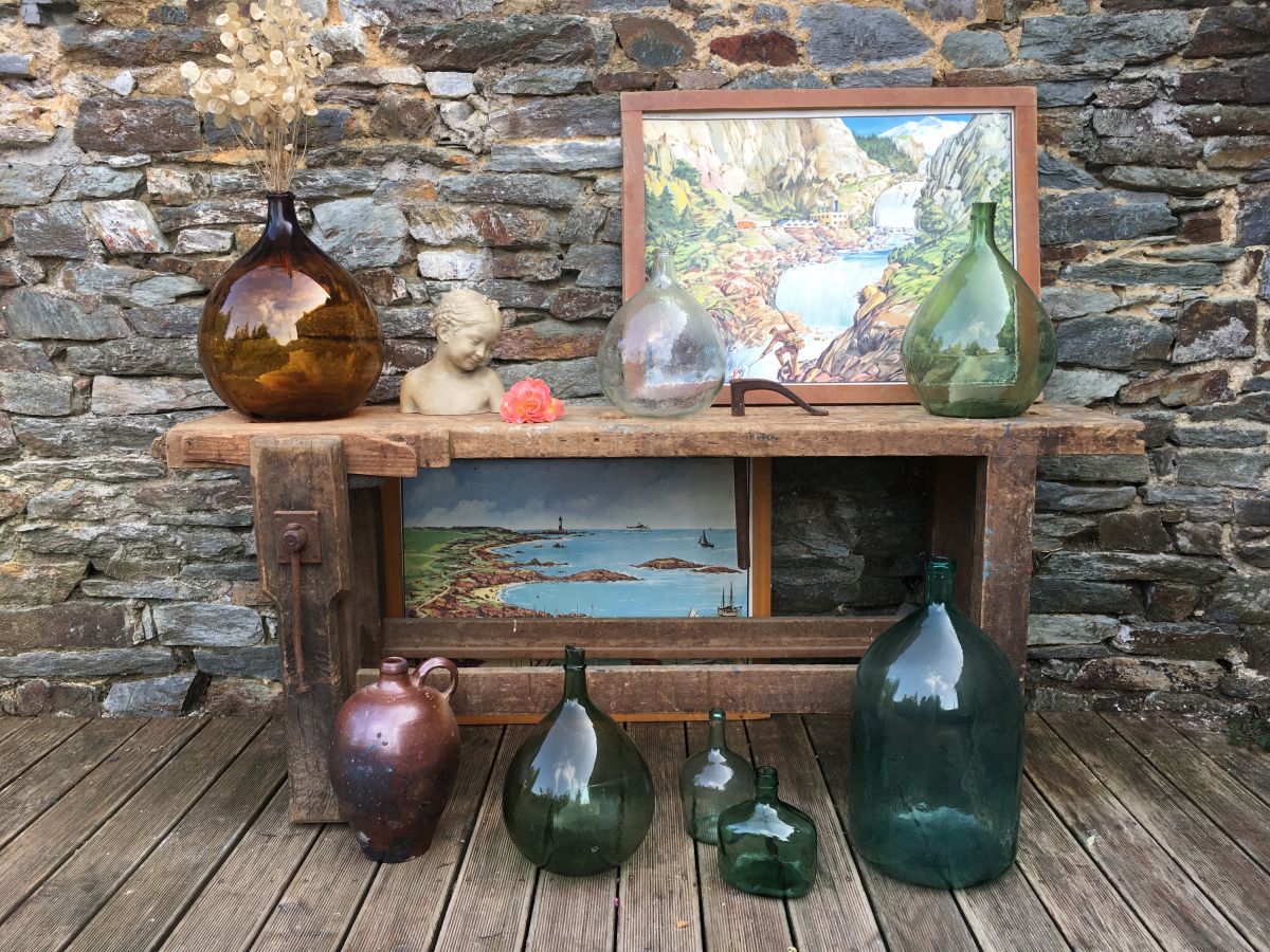 Sélection d'authentiques et anciennes Dames-Jeannes chinées un peu partout.
