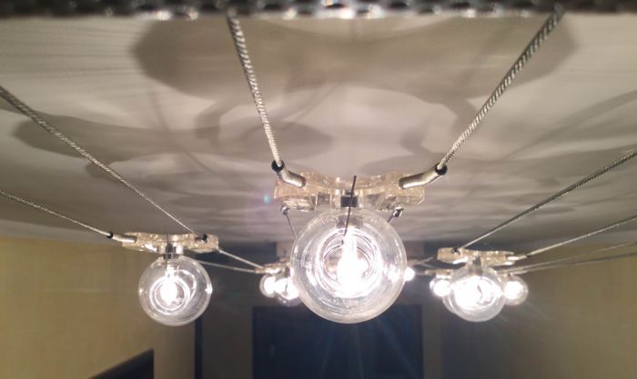 Il peut tout aussi bien servir de lustre que d'applique murale (comme sur la première photo d'expo, le lustre est en photo 2).