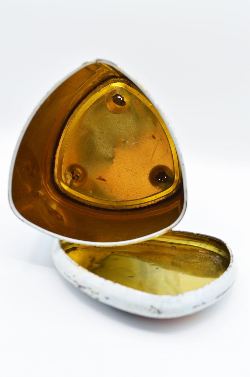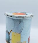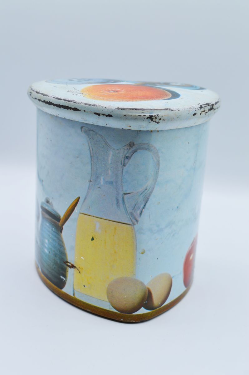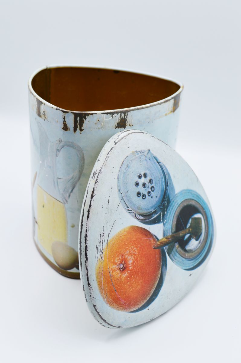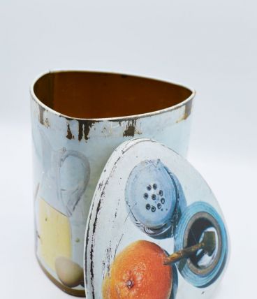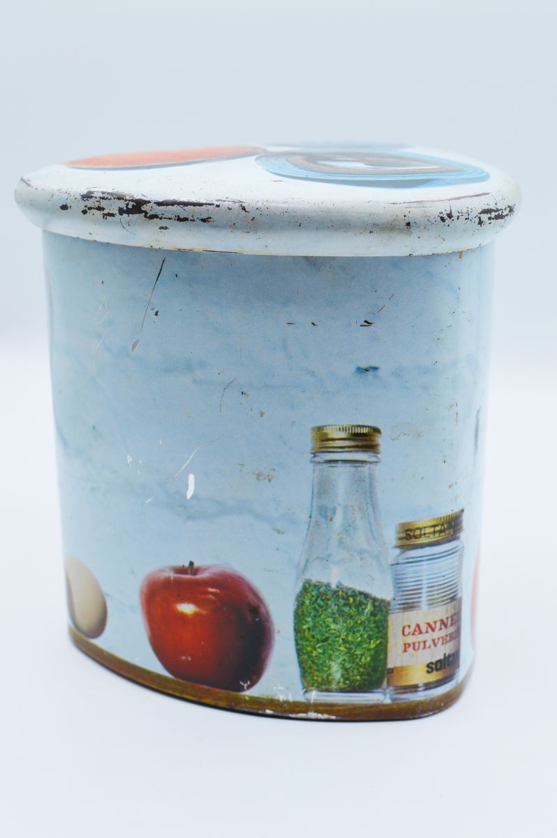 Boîte en métal ancienne triangulaire pour la cuisine. Cette boîte ne peut être utilisée qu'en décoration car points de rouille à l'extérieur et intérieur et des trous dans le fonds (voir photo). Cette boîte reste toutefois très sympathique, avec un vrai côté vintage. Elle sera parfaite pour apporter un petit côté rétro à votre déco.