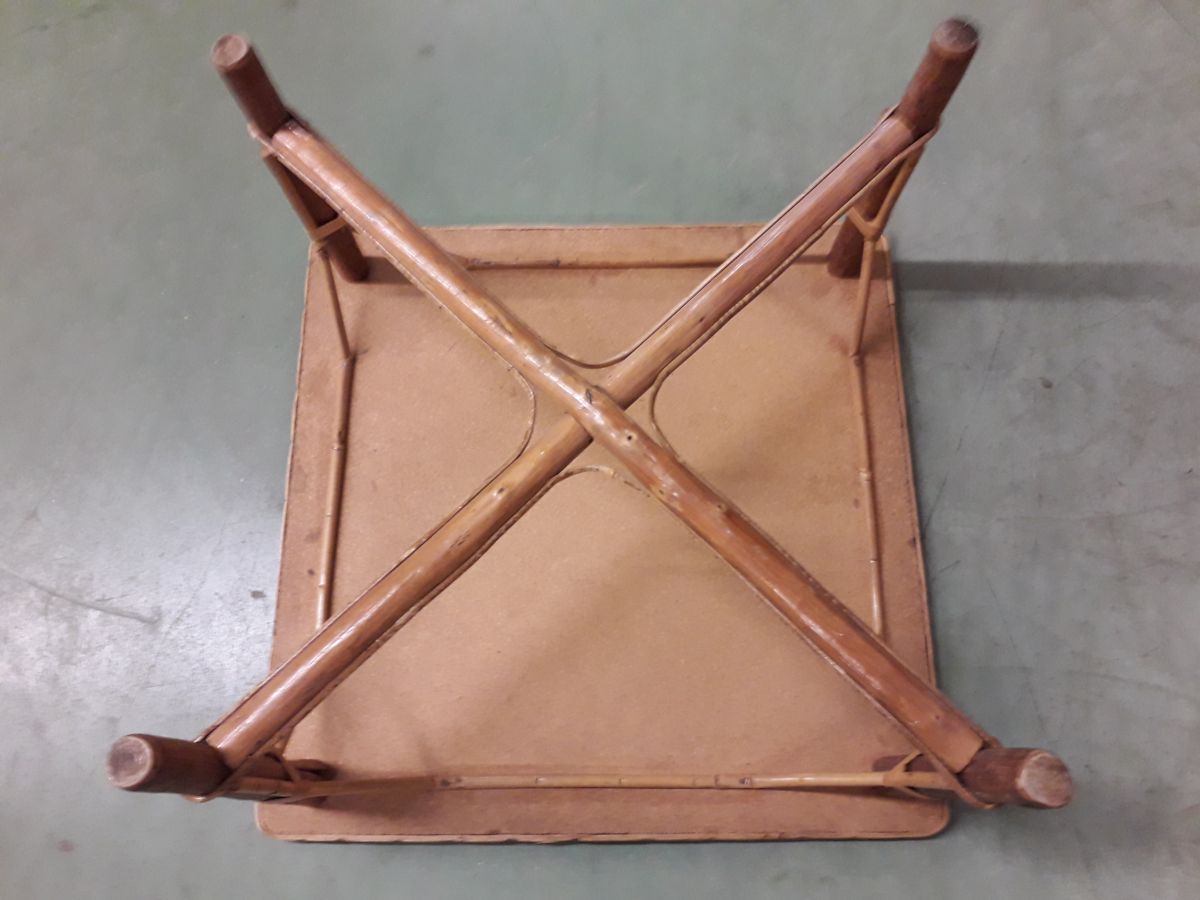 En bon état avec quelques traces d'usure. Dimensions: plateau carré 65*65 cm et haureur 37 cm.