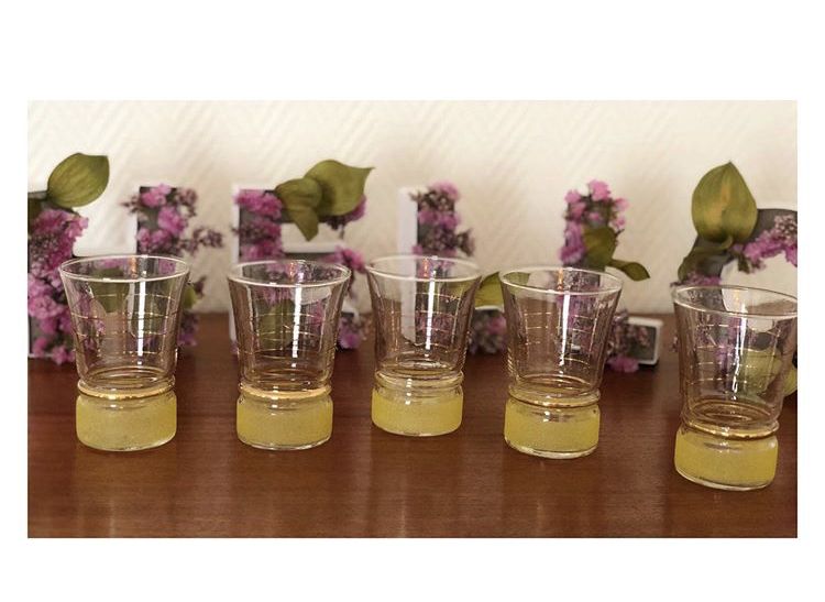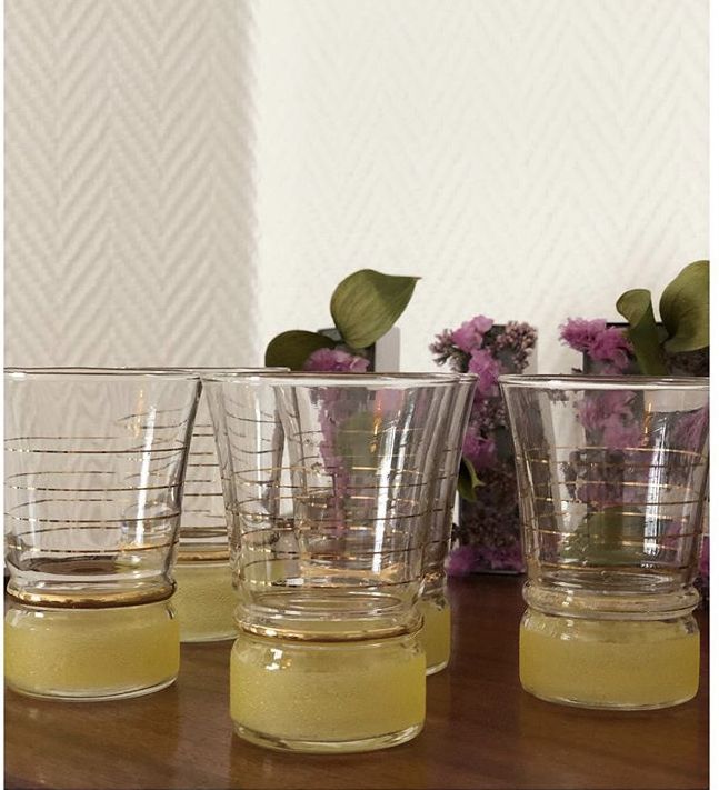 5 verres granites de couleur jaune