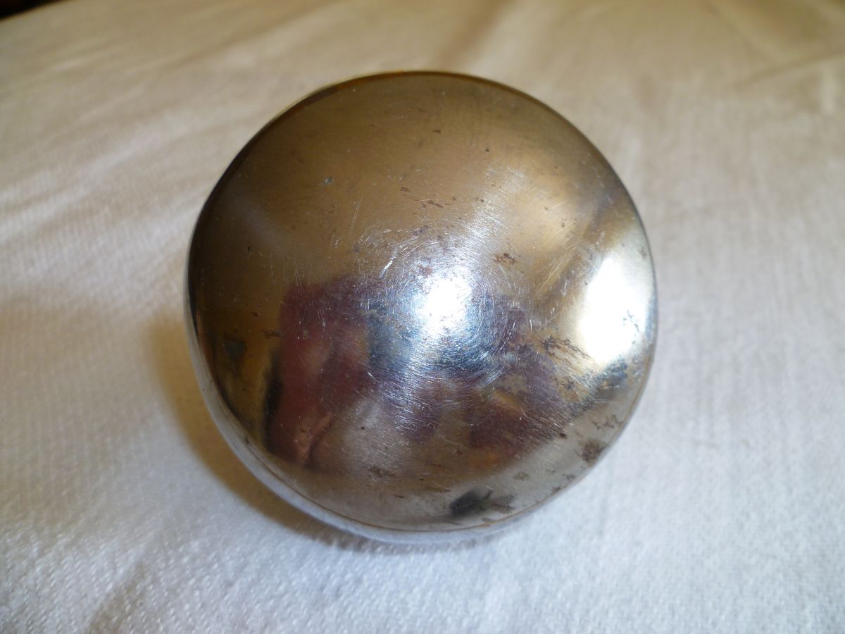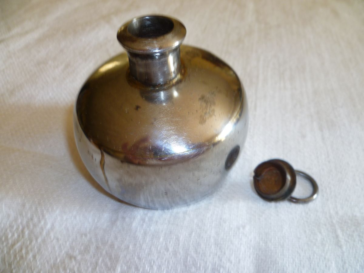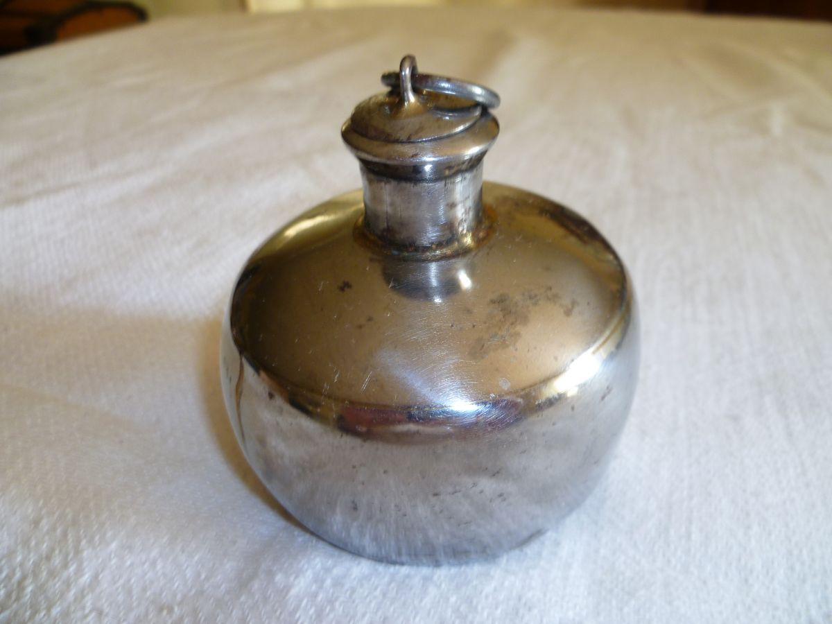 Encrier métal poli rapporté des Indes il y a 40 ans, 189 g, hauteur 7,8 cm, diamètre 8,5 cm,