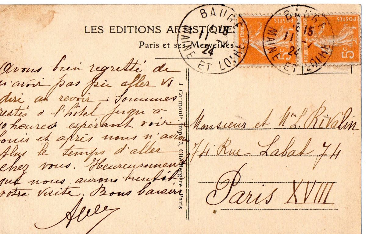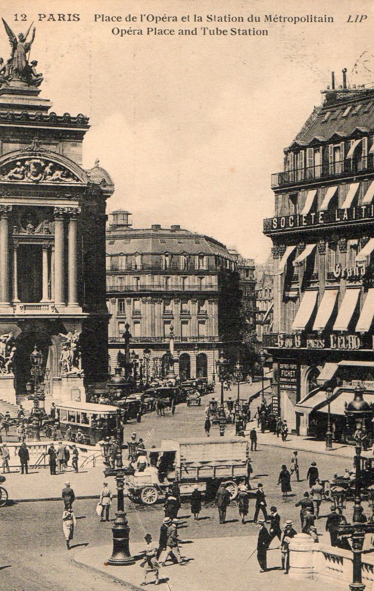 Carte postale noir et blanc, de 1924, Paris Place de l'Opéra et de la station du métropolitain.