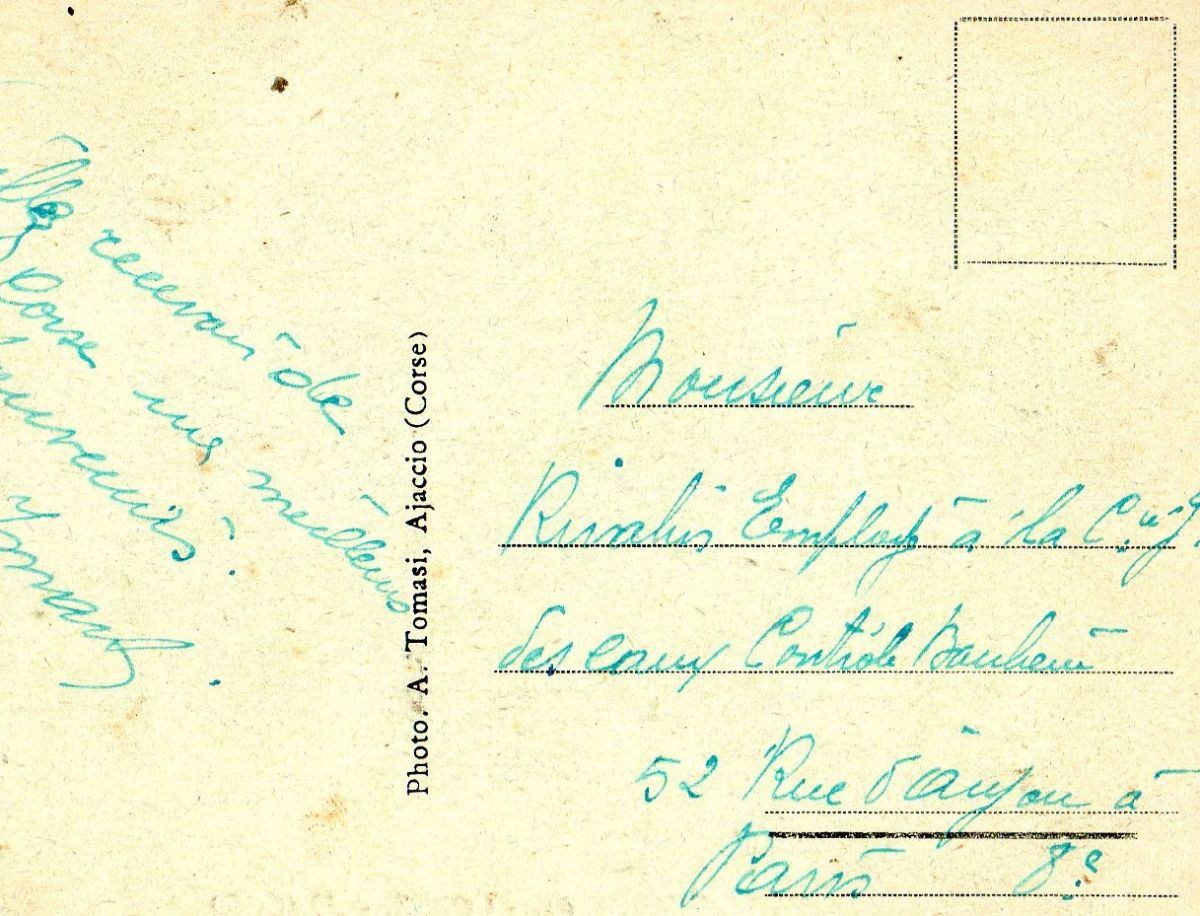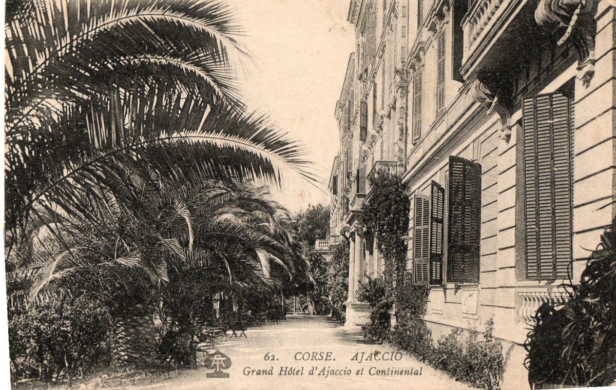 carte postale n et b grand hôtel Ajaccio vers 1920