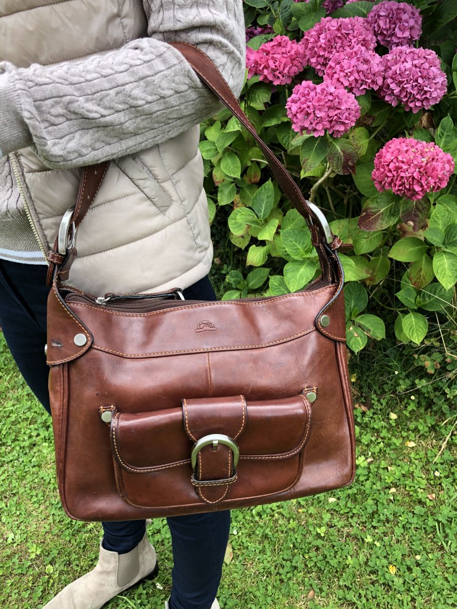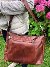 Très beau et chic sac Vintage en cuir épais marron.