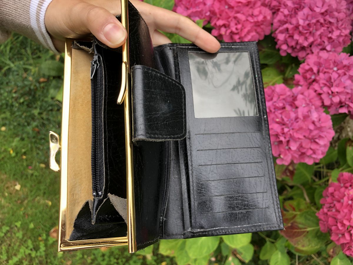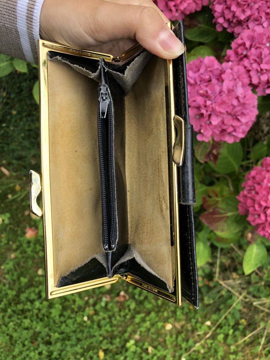 Compartiment porte monnaie, fermeture dorée (Dorure légèrement usée).