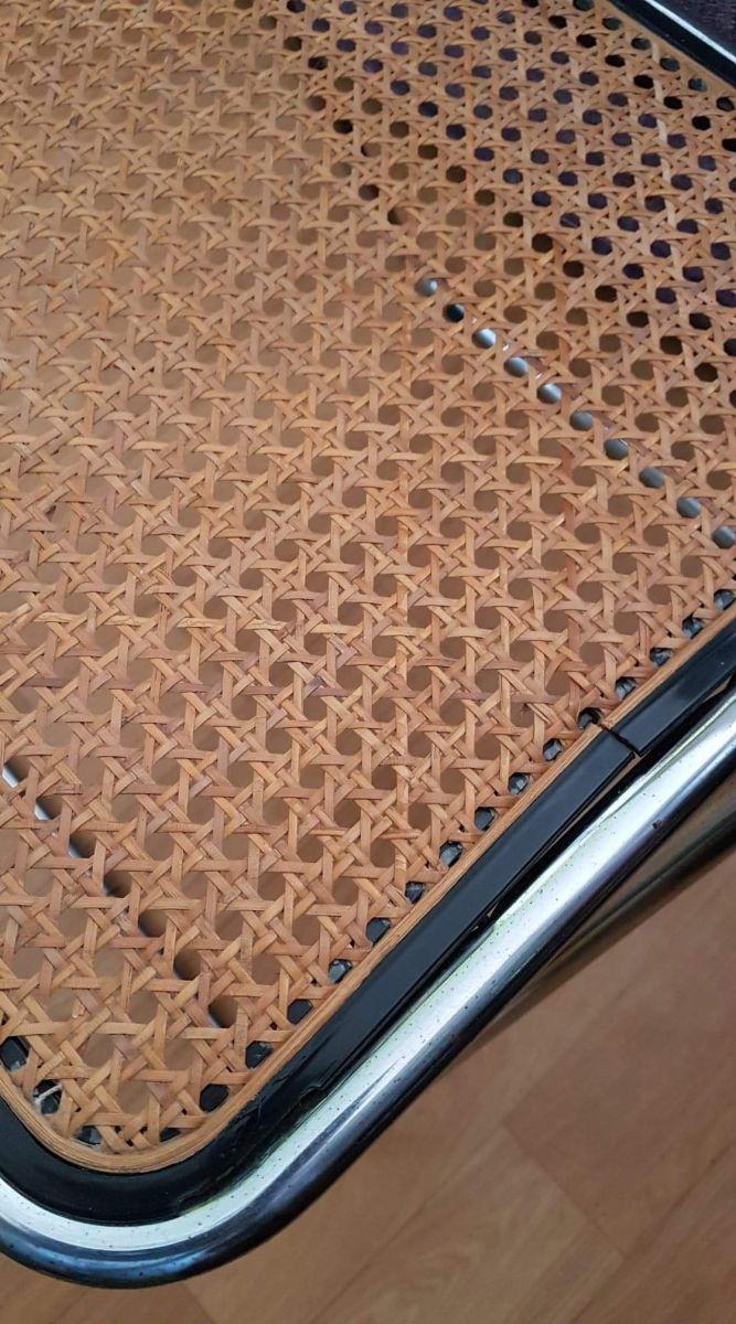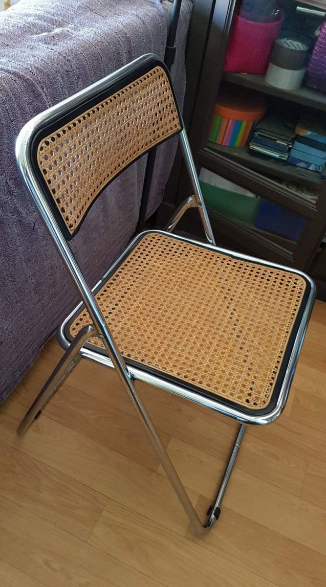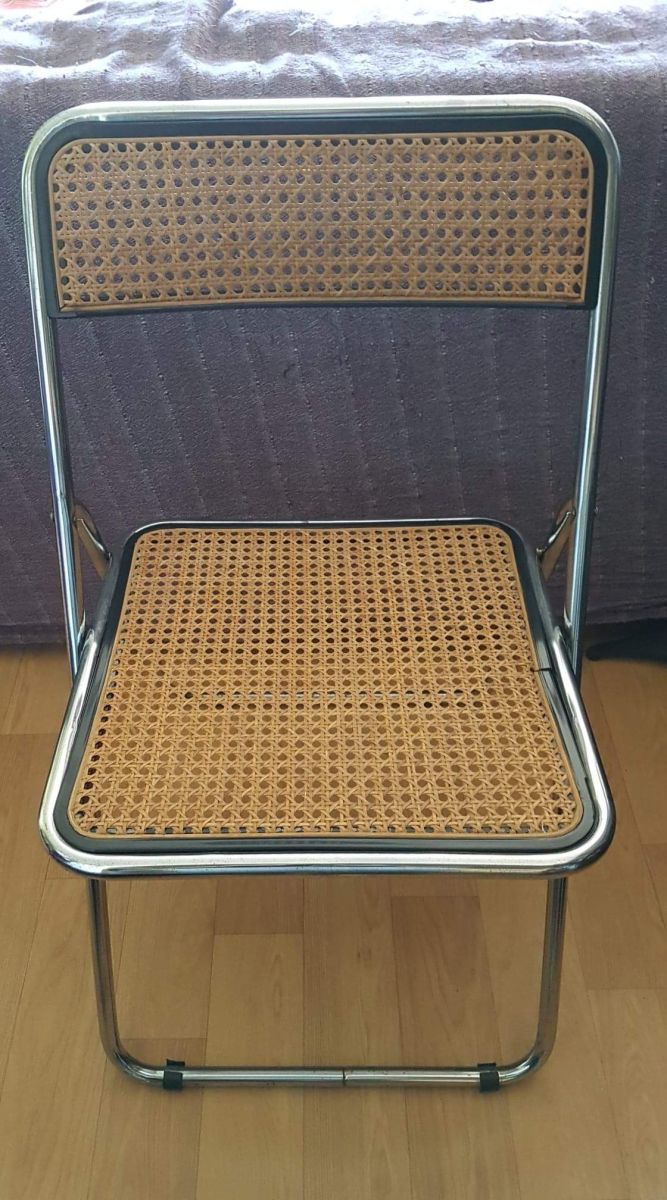 chaise pliable cannée structure métal chromé style Castelli