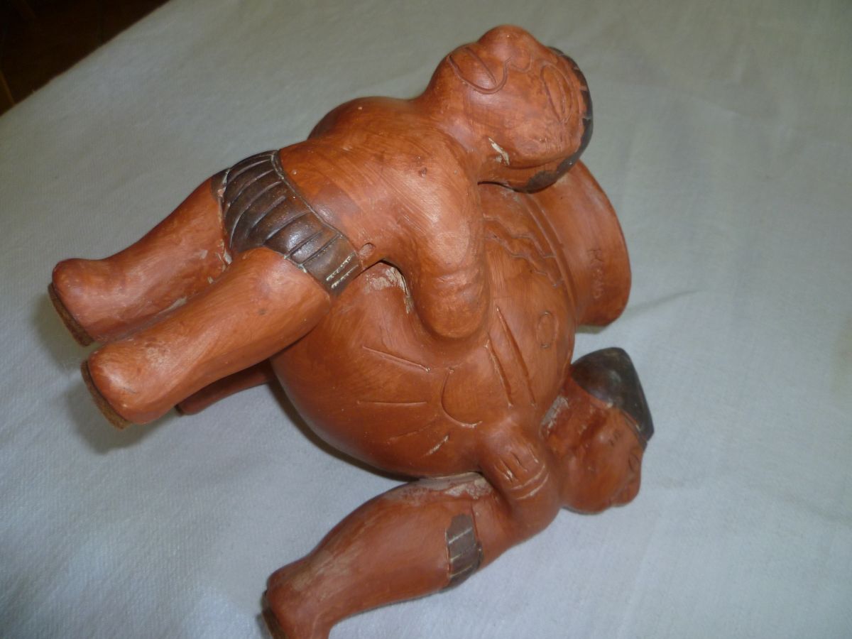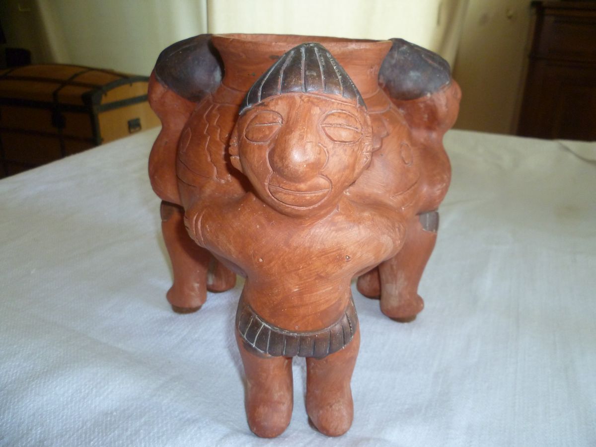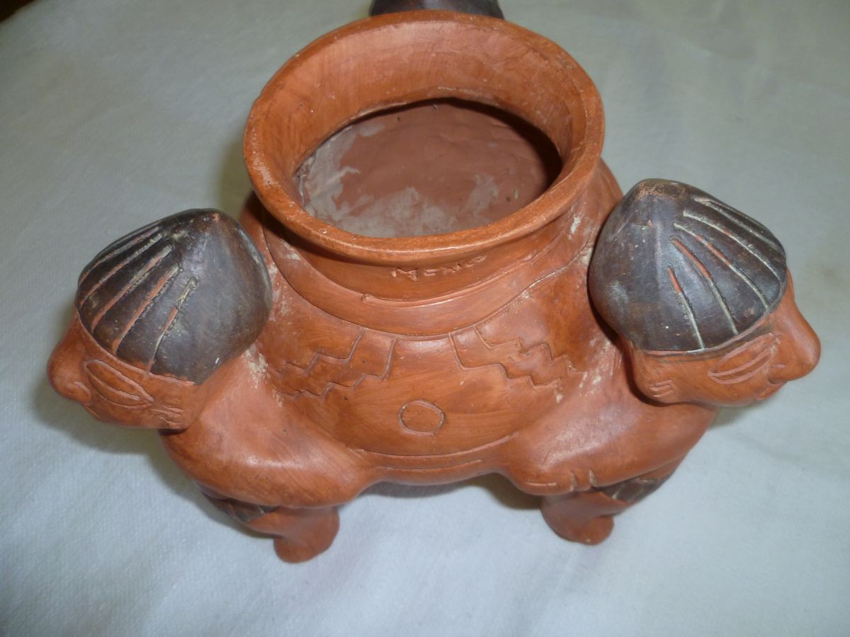 Vase tripode anthropomorphe en terre cuite de style précolombien, Mexique, vintage. Parfait état. Aucune ébréchure ou fêlure.