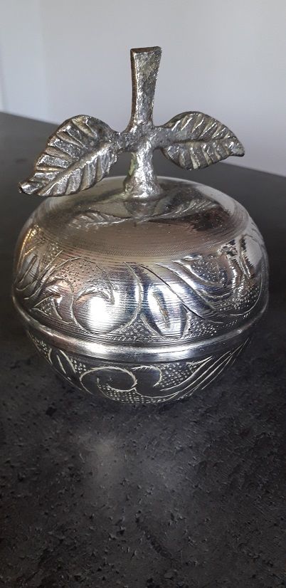 Ensemble pomme et poire vintage en métal gravé