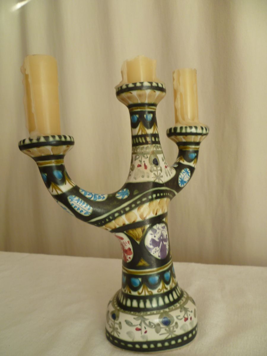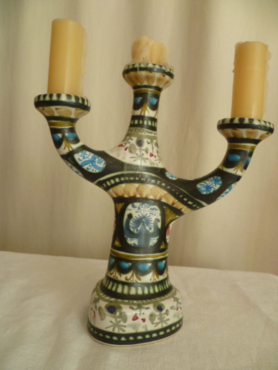 Chandelier 3 branches, Faïence de Keraluc, Quimper, d'André Helguen, 1960/70, signé.
