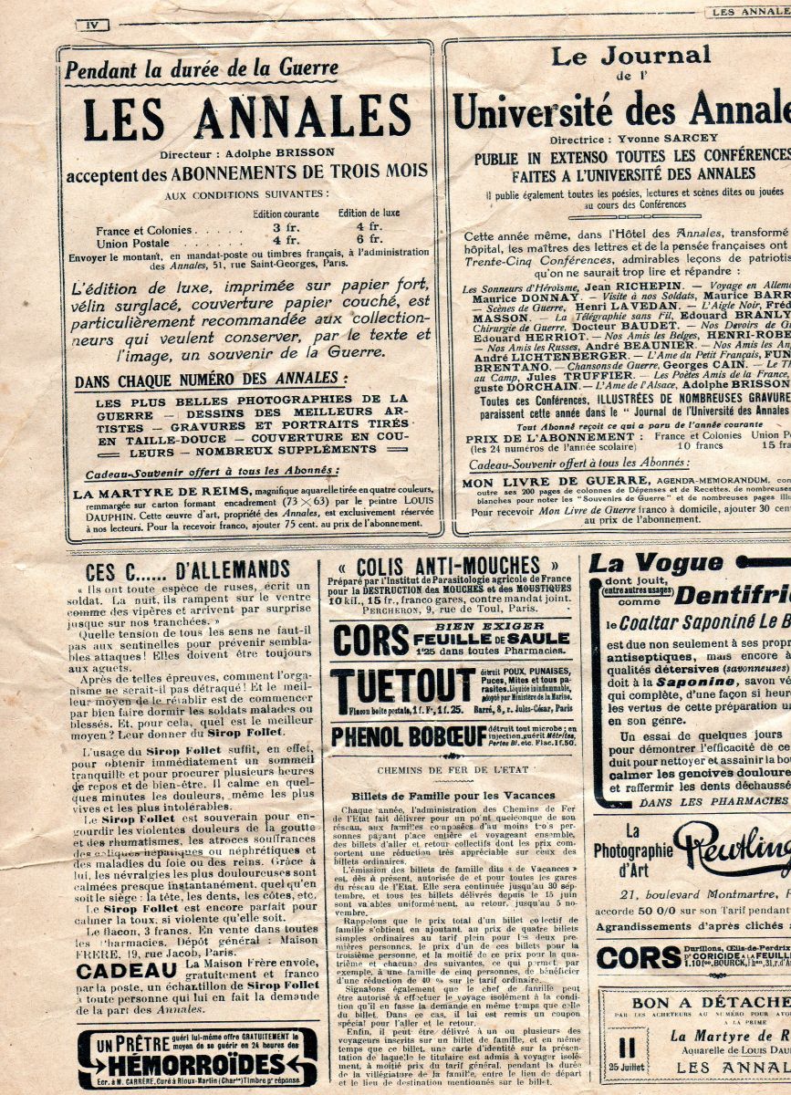 DERNIERE PAGE : différents articles et publicités d'époque