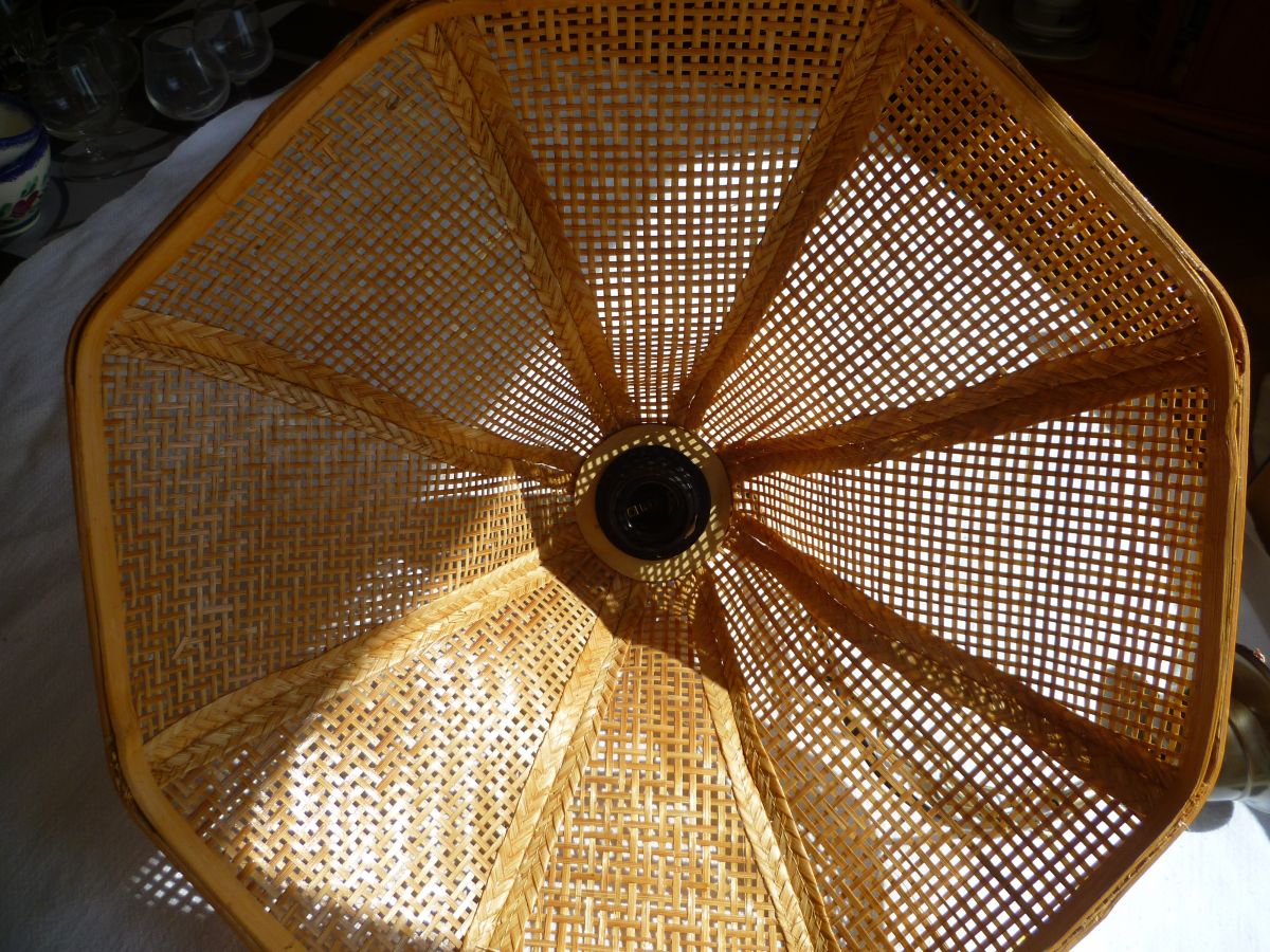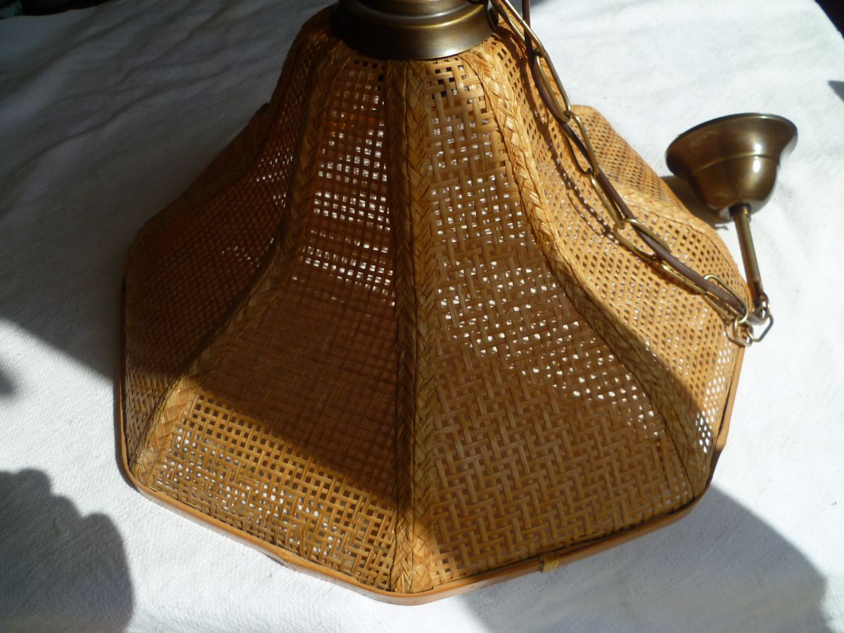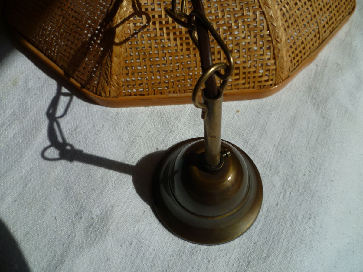 Suspension en osier tressé, support laiton, 1960/70. Excellent état.