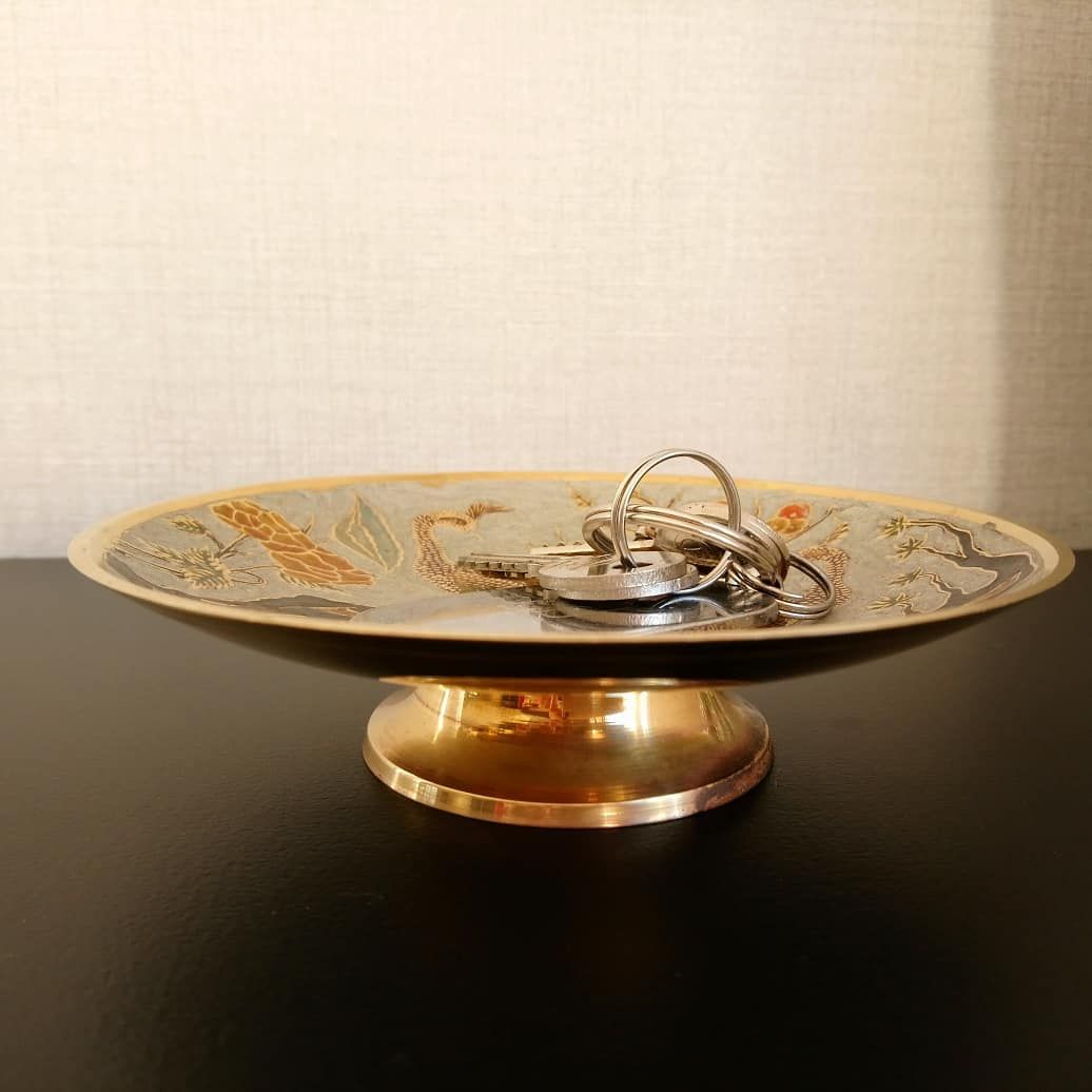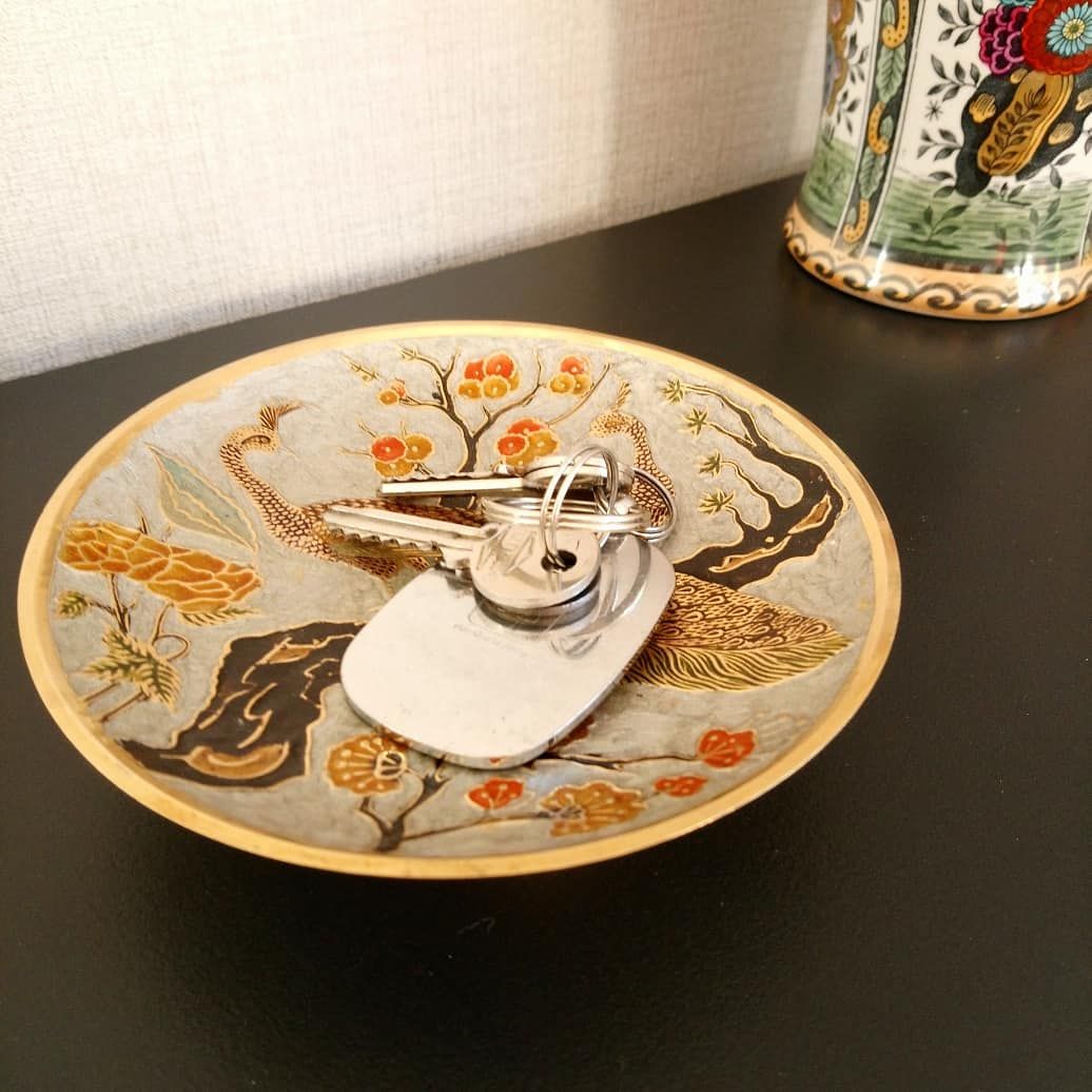 Vide poche élégant, poli pour lui redonner sa brillance. Gravure paons esprit japon.