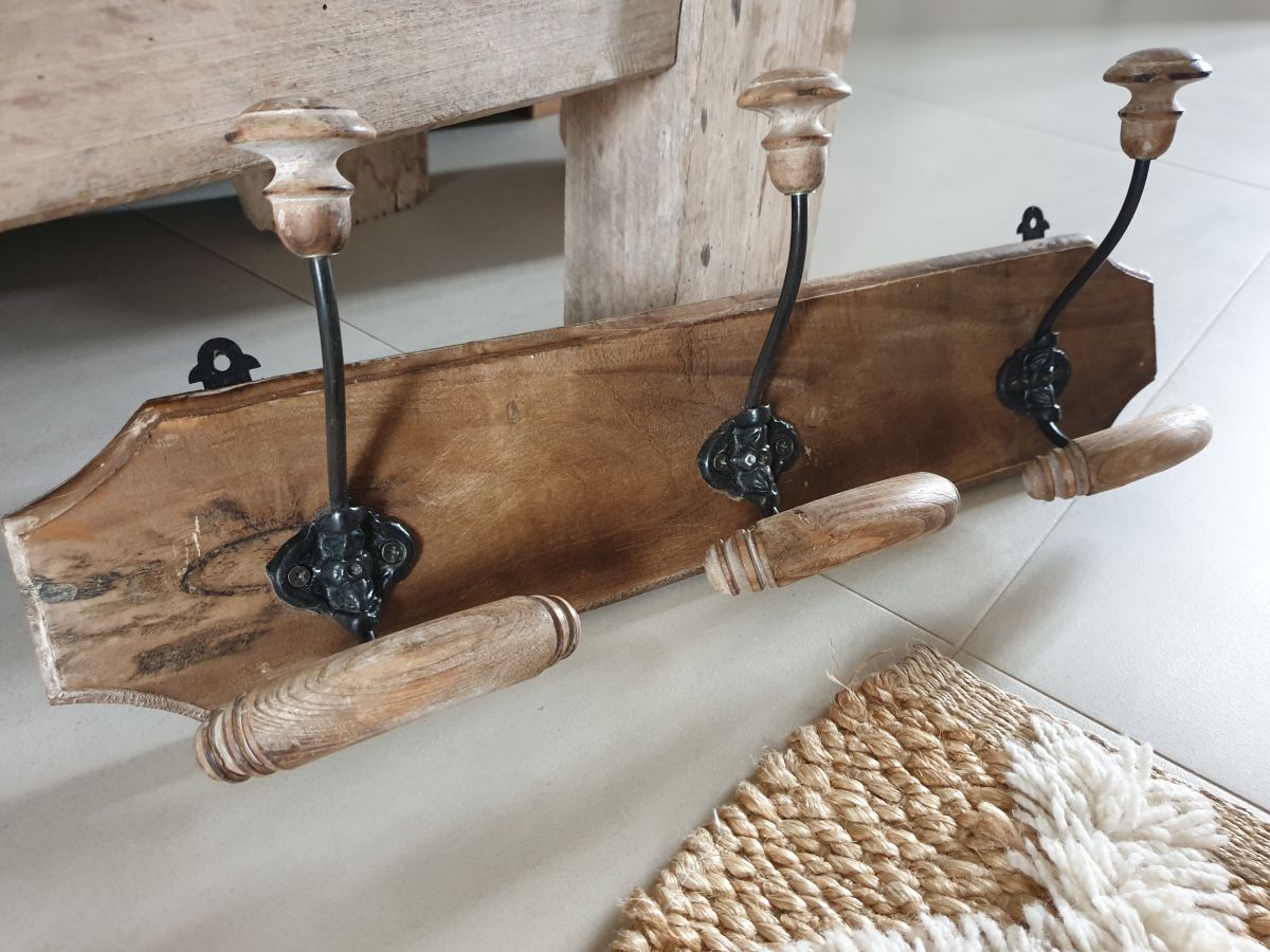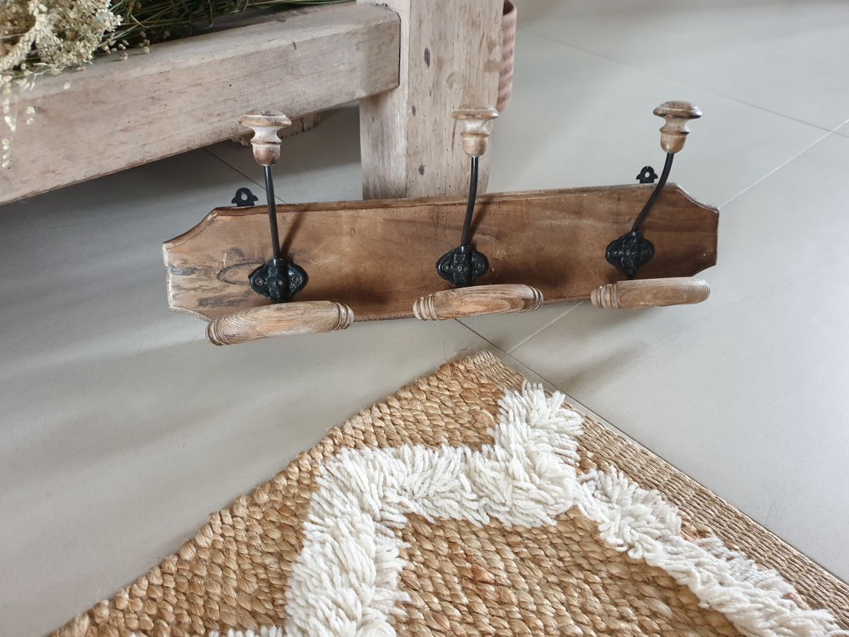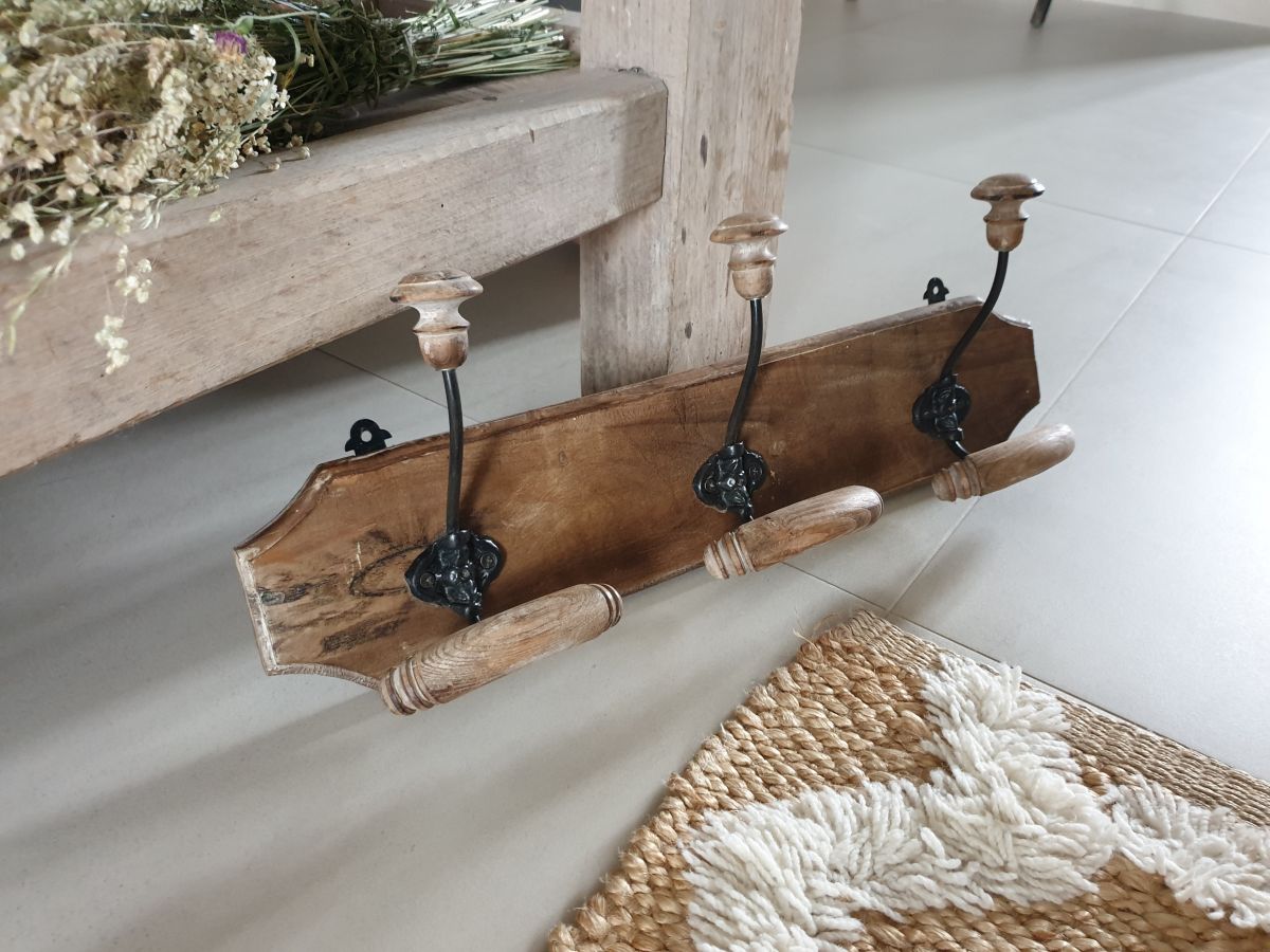 Beu porte manteaux en bois et métal comprenant 3 patères.