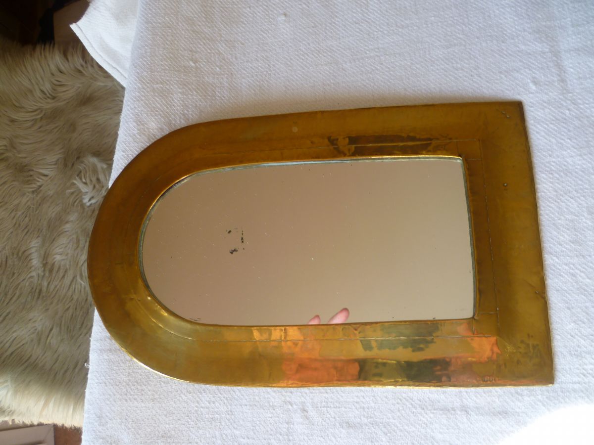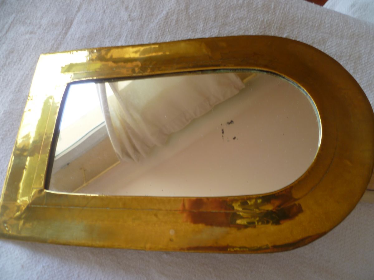 Petit miroir encadré de laiton, artisanal rapporté des Indes à la fin des années 70.