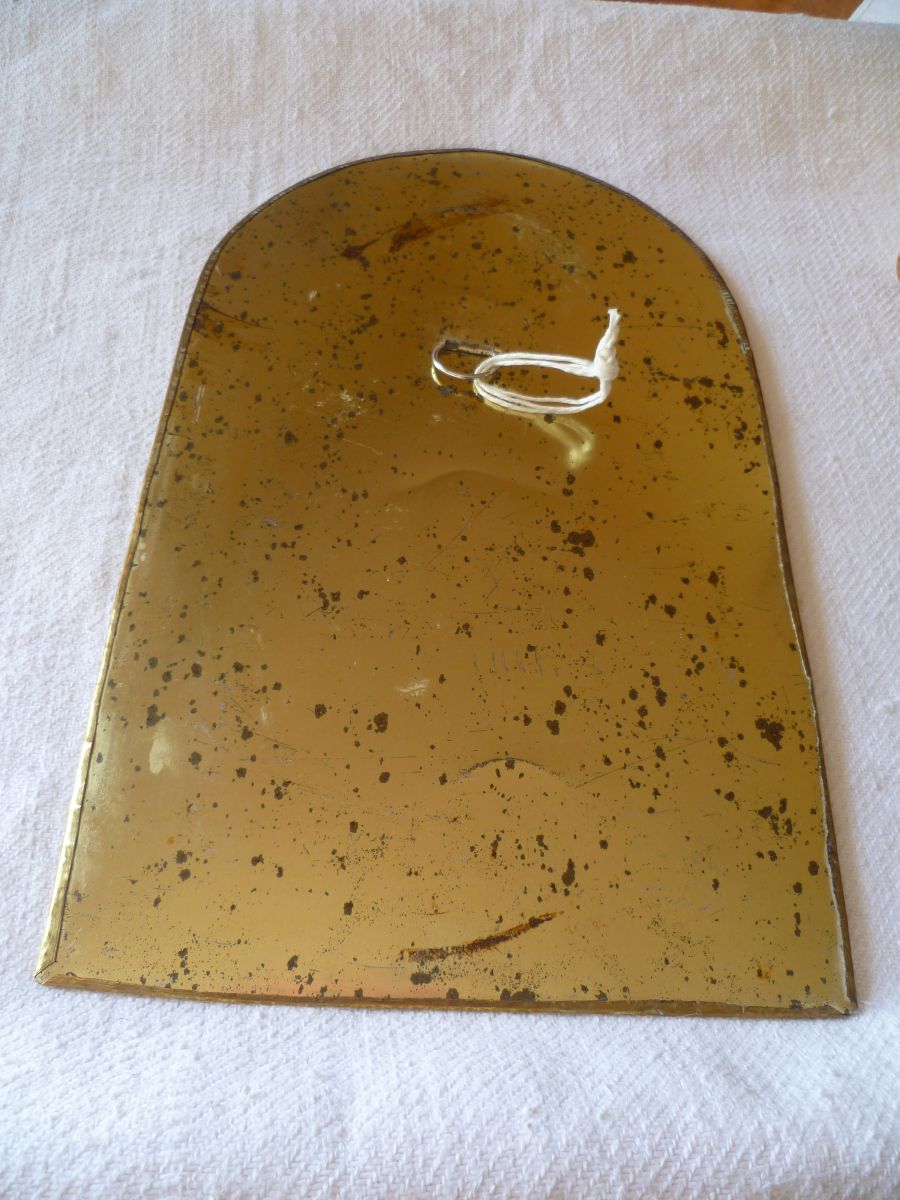 Il se personnalise par sa fabrication à la main identifiable et quelques marques du temps, au dos traces d'oxydation et sur le miroir quelques taches de vieillissement.