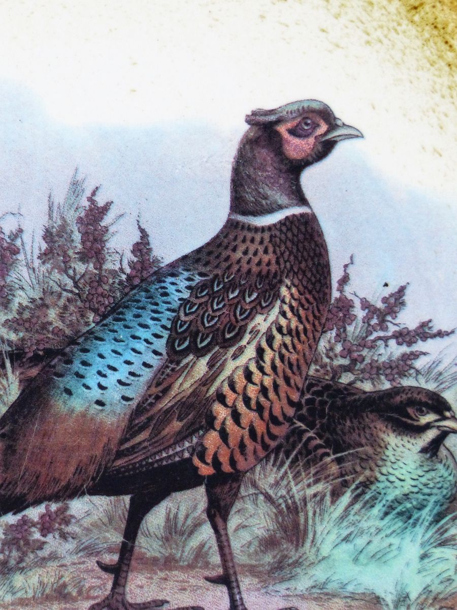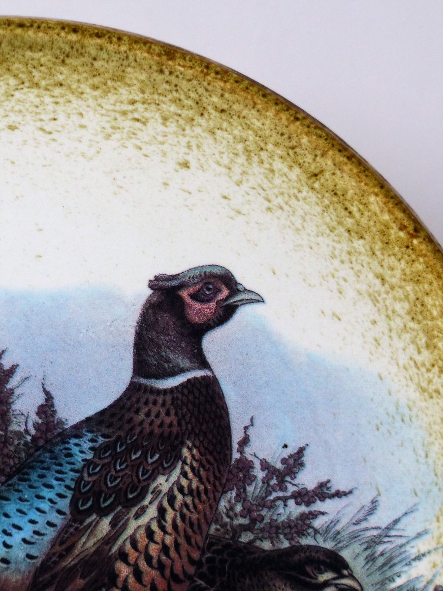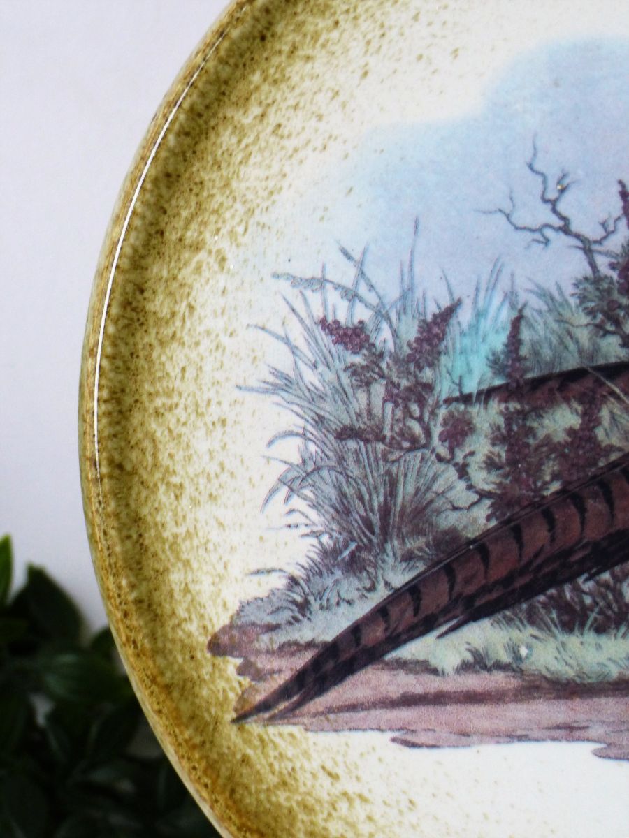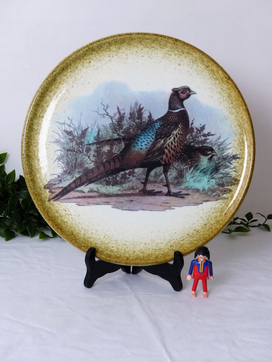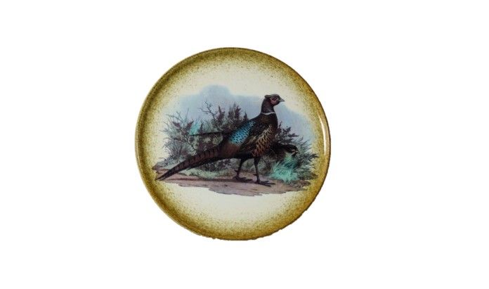 Plat de présentation en céramique, décor nature, faisan. Pour vos plateaux de fromage ou vos plats de viande. Diamètre 33 cm.