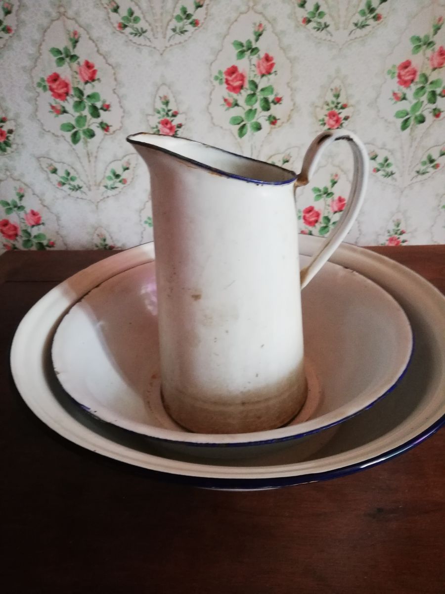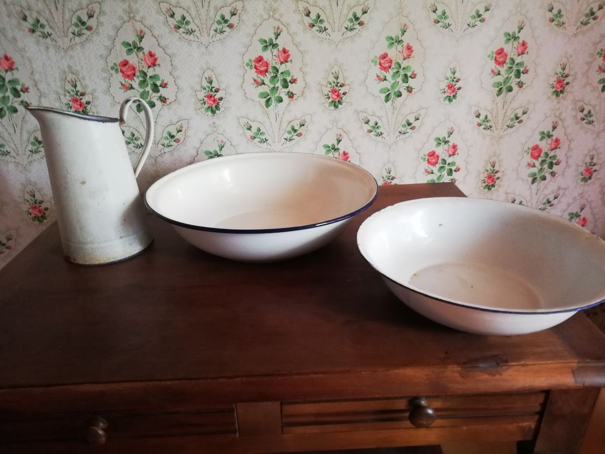 Lot d'un broc avec ses 2 bassines. Ils sont en état correct par rapport à leur âge.