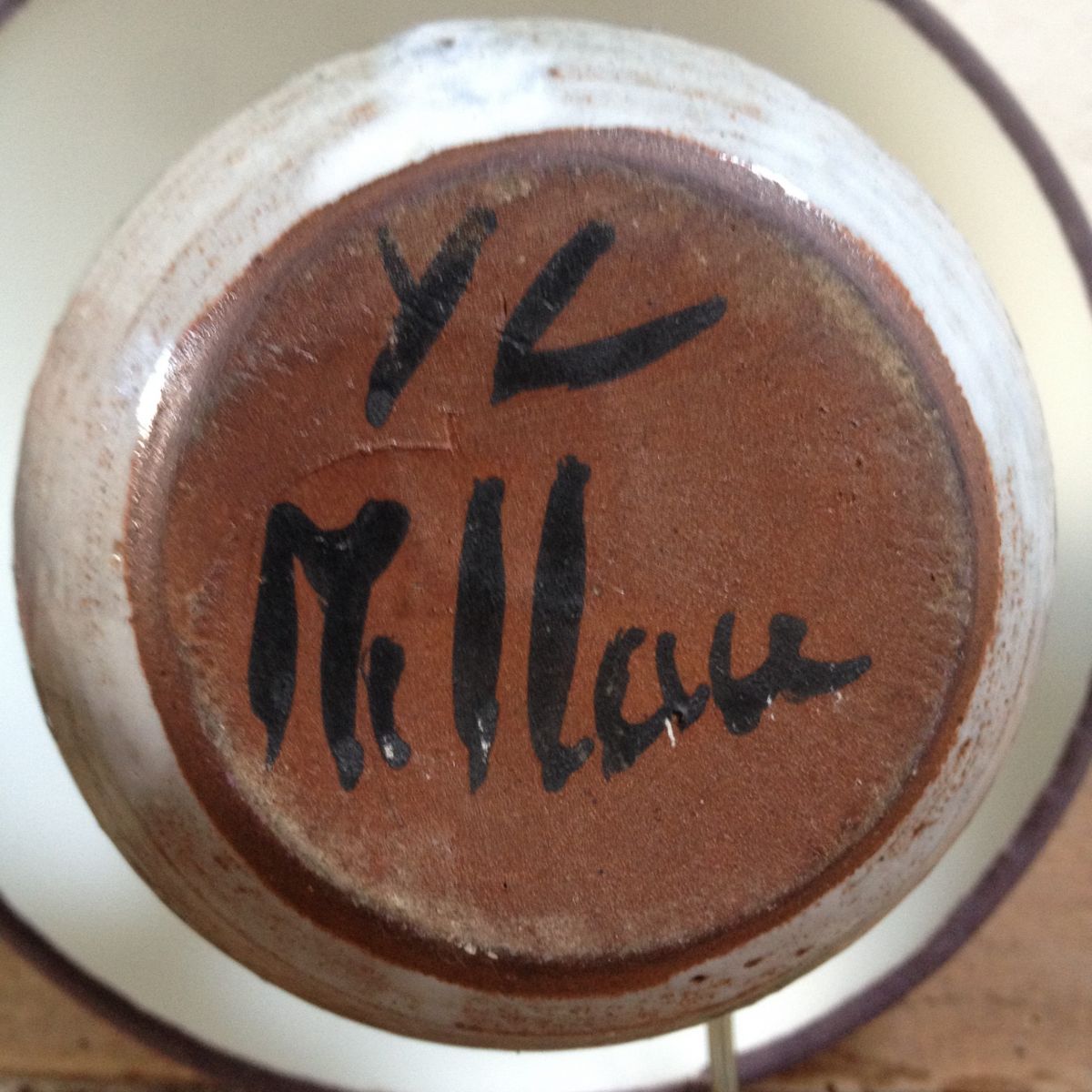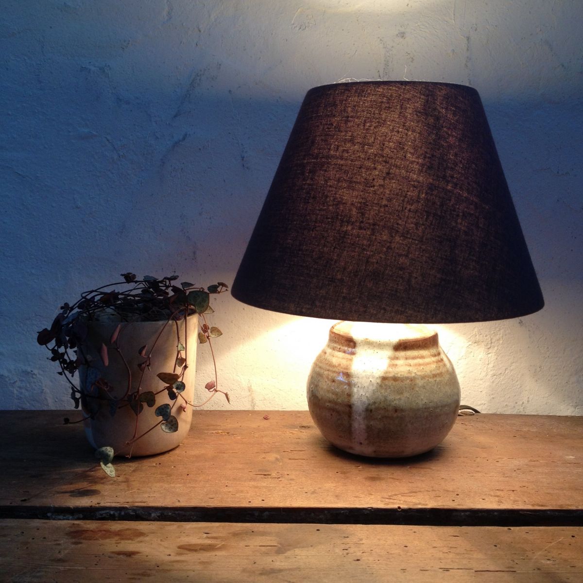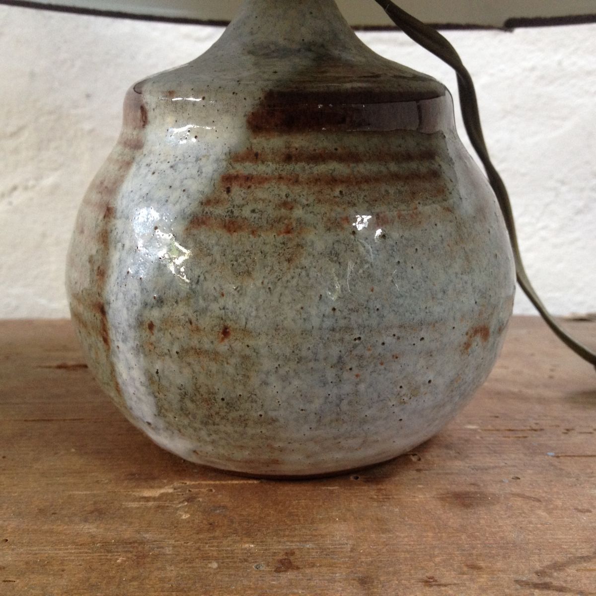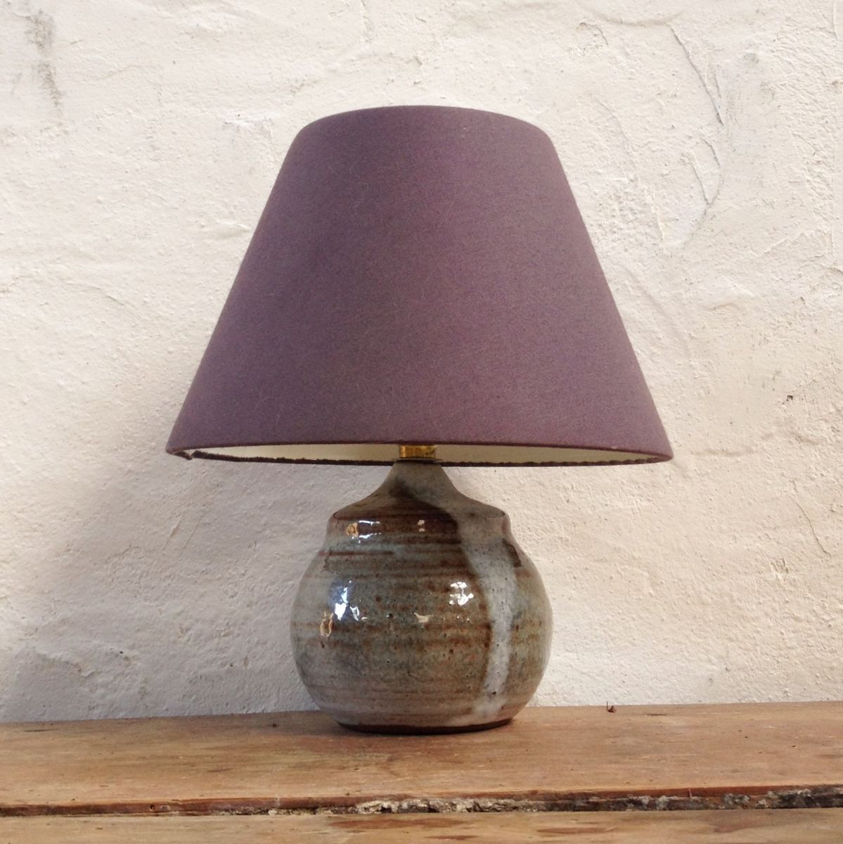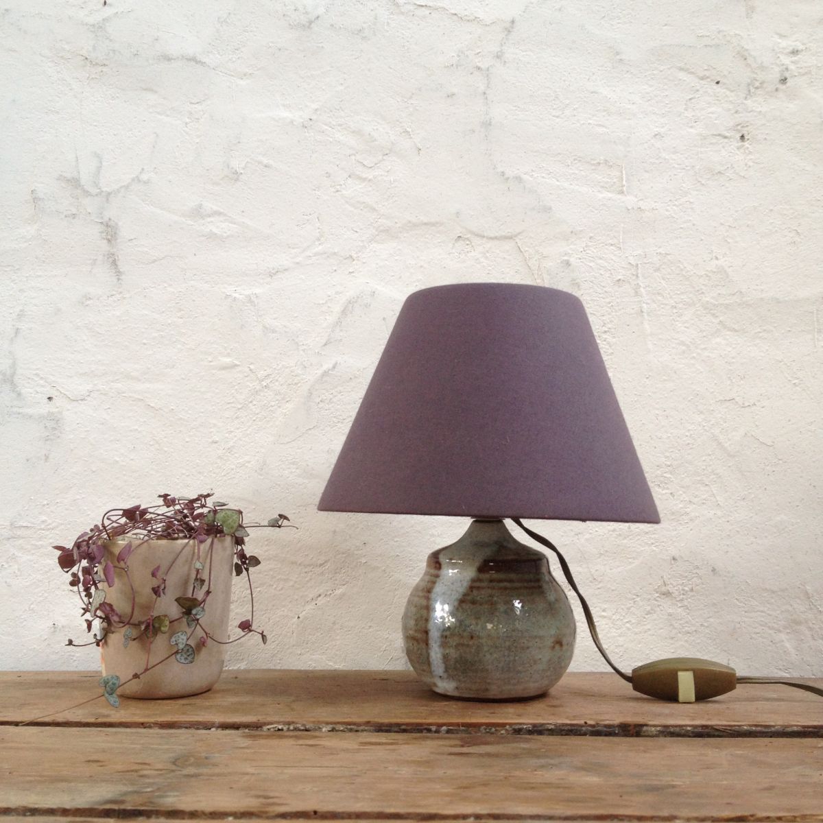 Très jolie petite lampe de table des années 70, avec un pied en céramique émaillé gris et brun. Elle est signée YC Millau.