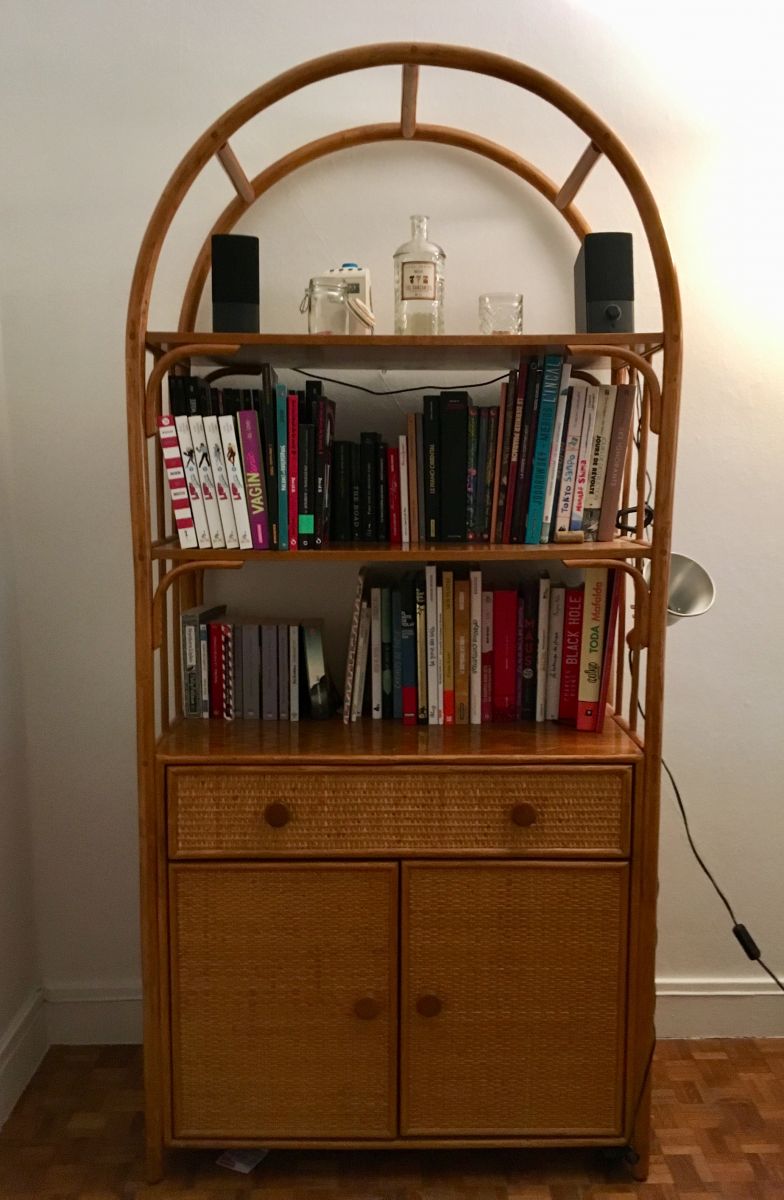 Etagère / bibliothèque vintage en rotin - parfait état