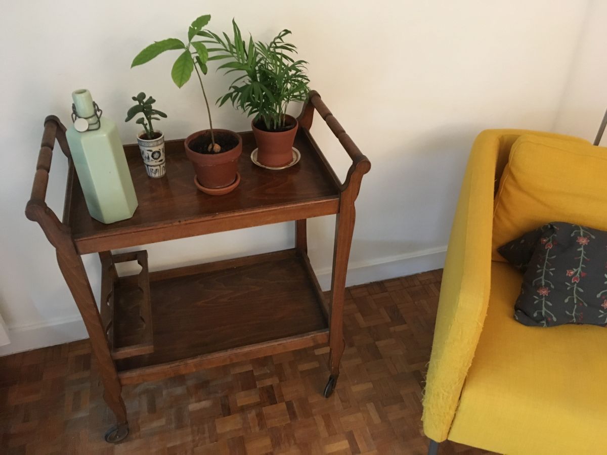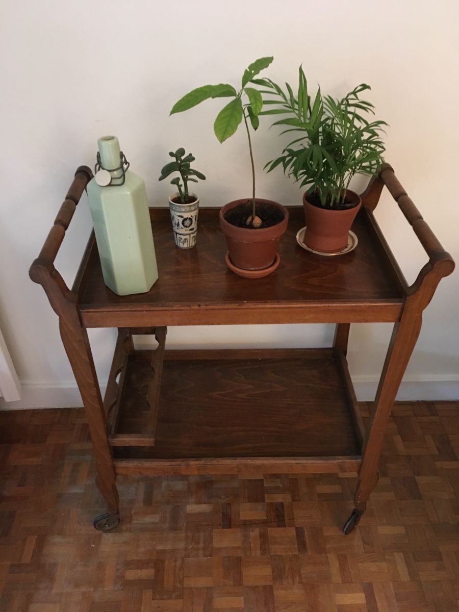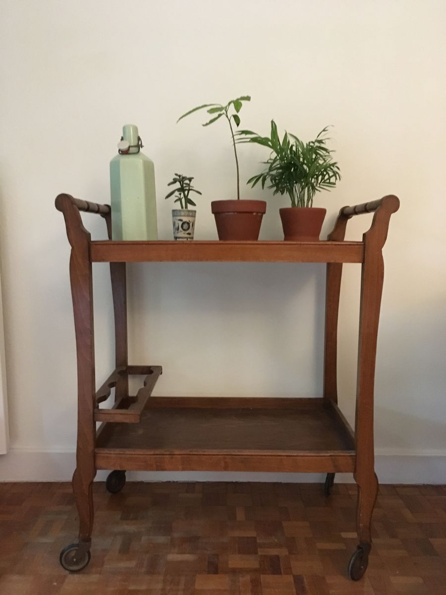 Joli bois. Deux plateaux, l'un pour le service, l'autre pour ranger bouteilles et alcools.
