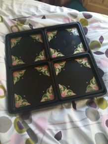 Plateau à fromages vintage , modèle harmonie fabriqué à Gien accompagné de ses 6 assiettes assorties