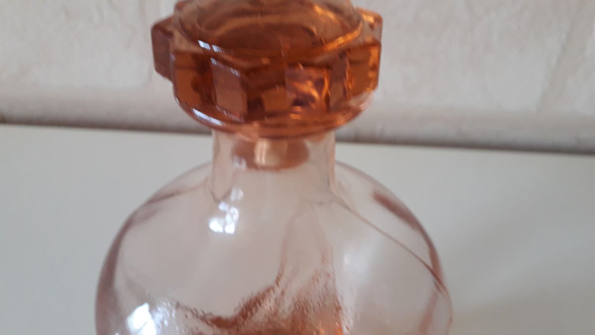 carafe rose ambree en verre avec son bouchon etoile qui lui donne un aspect diamante
