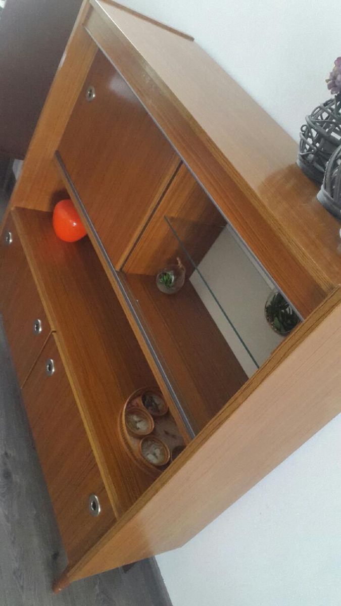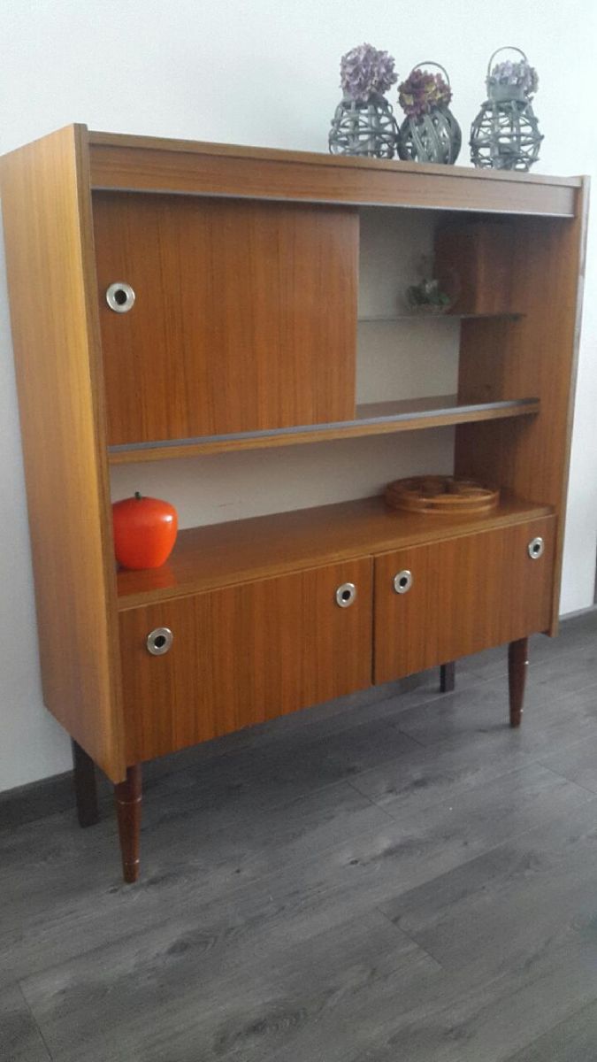 Armoire, argentier, bibliothèque, living, commode, dressing, compas, fuseaux, rétro, formica, ancien, bois, séjour, salle à manger, salon, chambre. Années 1950, 1960, 1970.