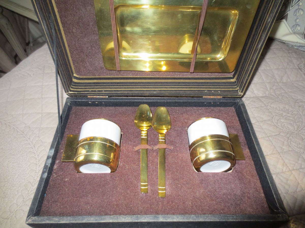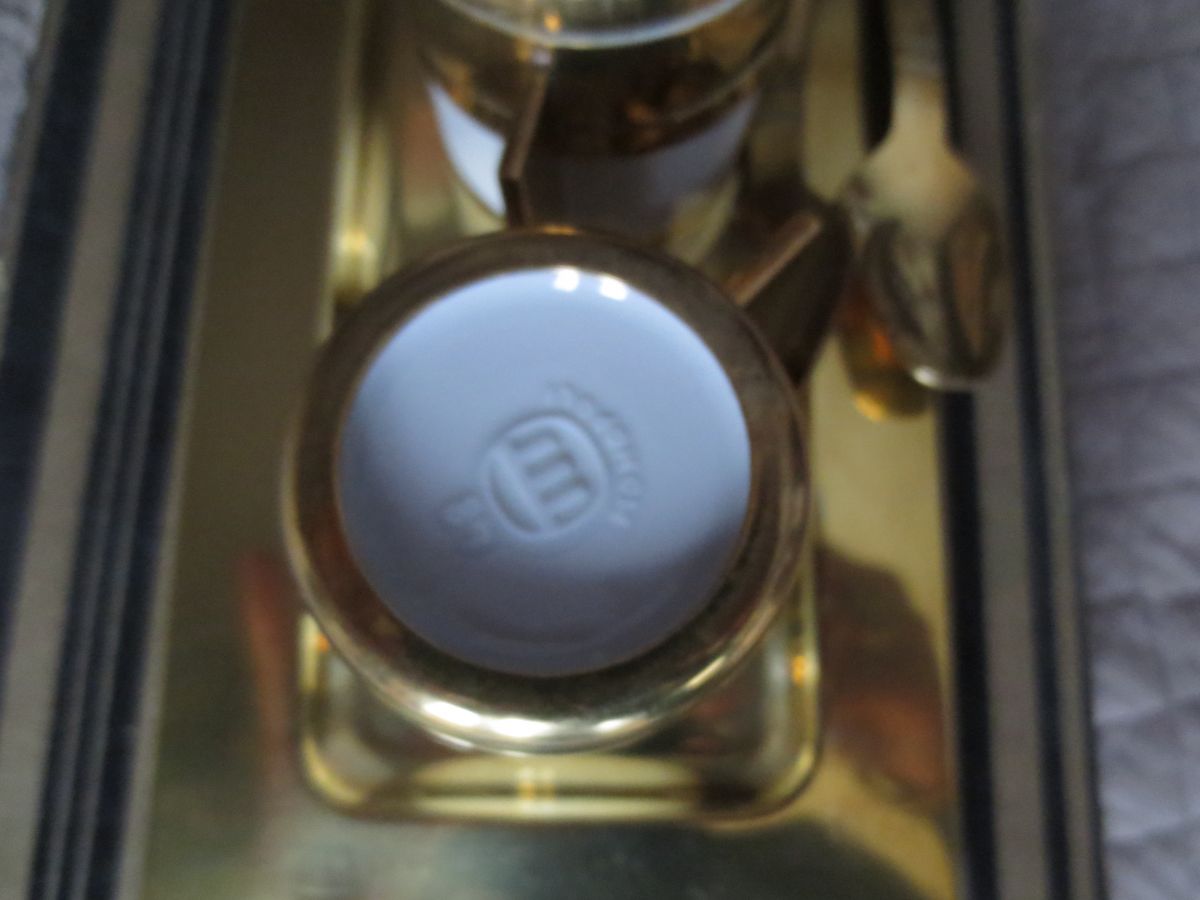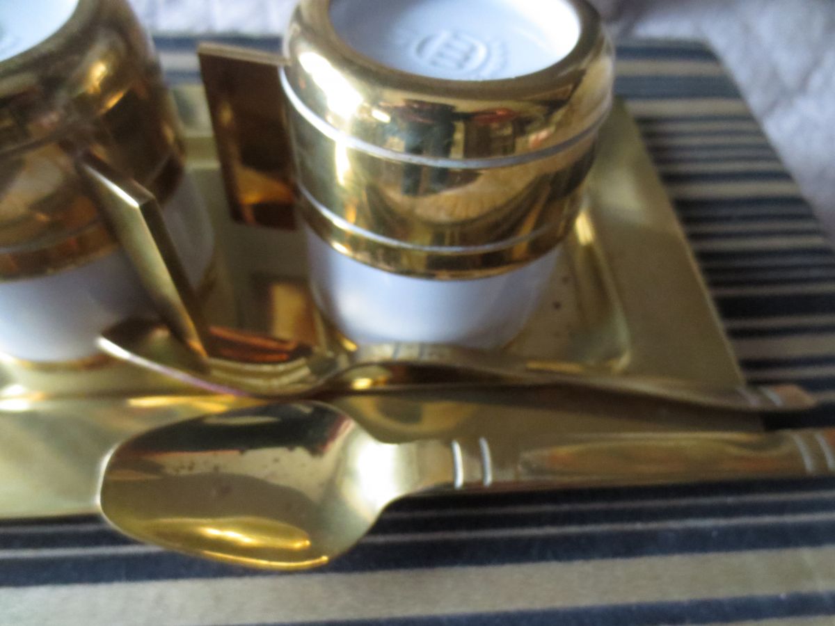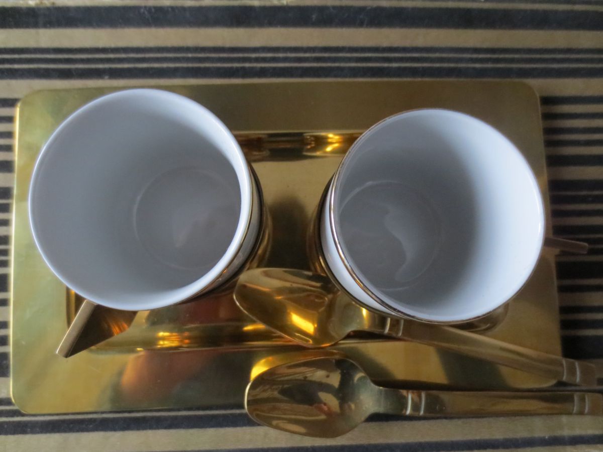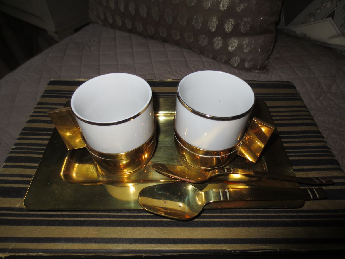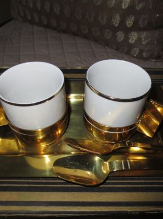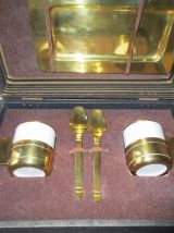 Superbe et rare service à café toi et moi ART DECO, en laiton et porcelaine composé de: