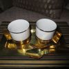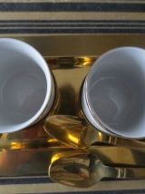 2 tasses, 1 petit plateau et 2 cuillères. Porcelaine Monopoli