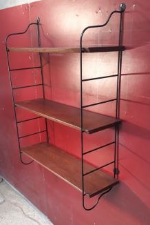 Système d'accroche originale : l'étagère complète repose sur 2 baguettes en bois fixées au mur.