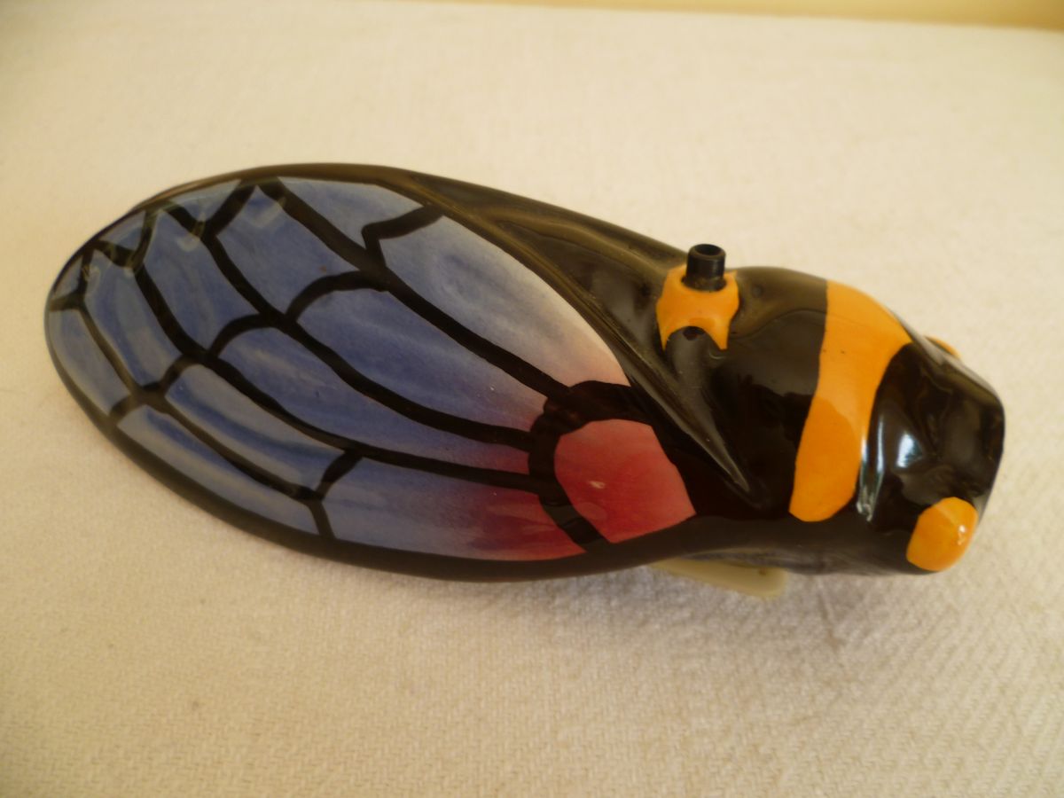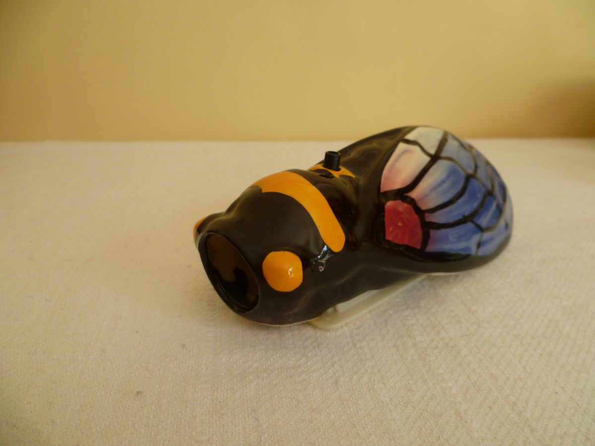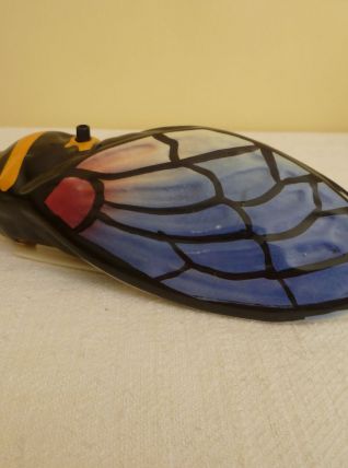 Cigale en céramique musicale avec détecteur radar sonore. Elle chante lorsque l'on passe à côté (interrupteur ON/OFF).